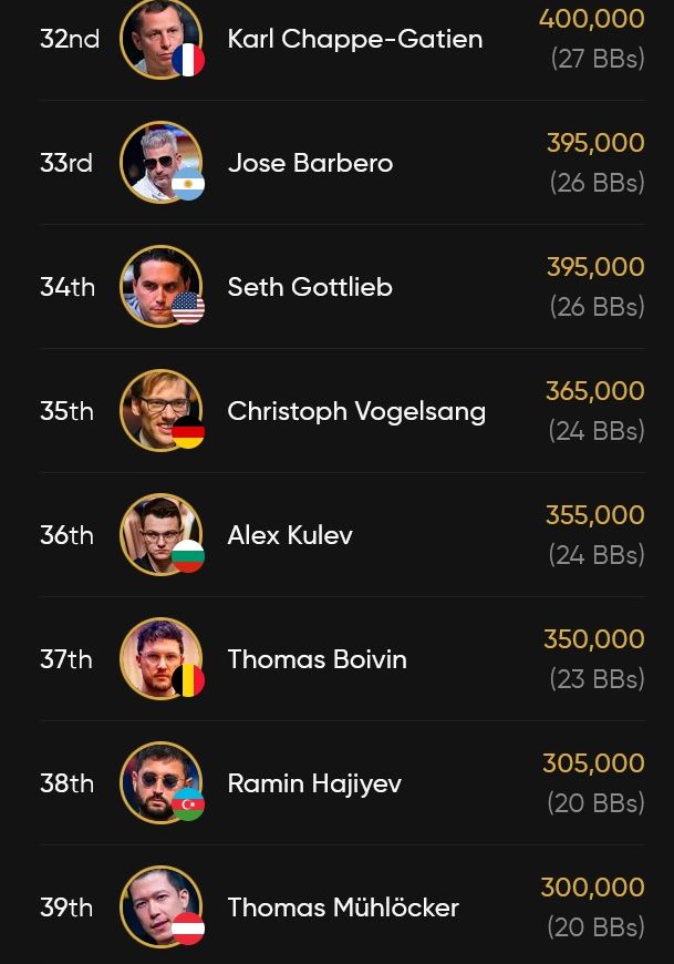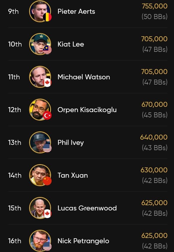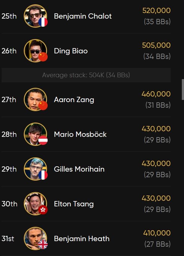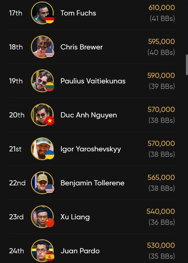 Den besten Start legte Fedor Holz hin, der sich mit 1,305 Millionen Chips an die Spitze der 52 verbliebenen Spieler setzte.