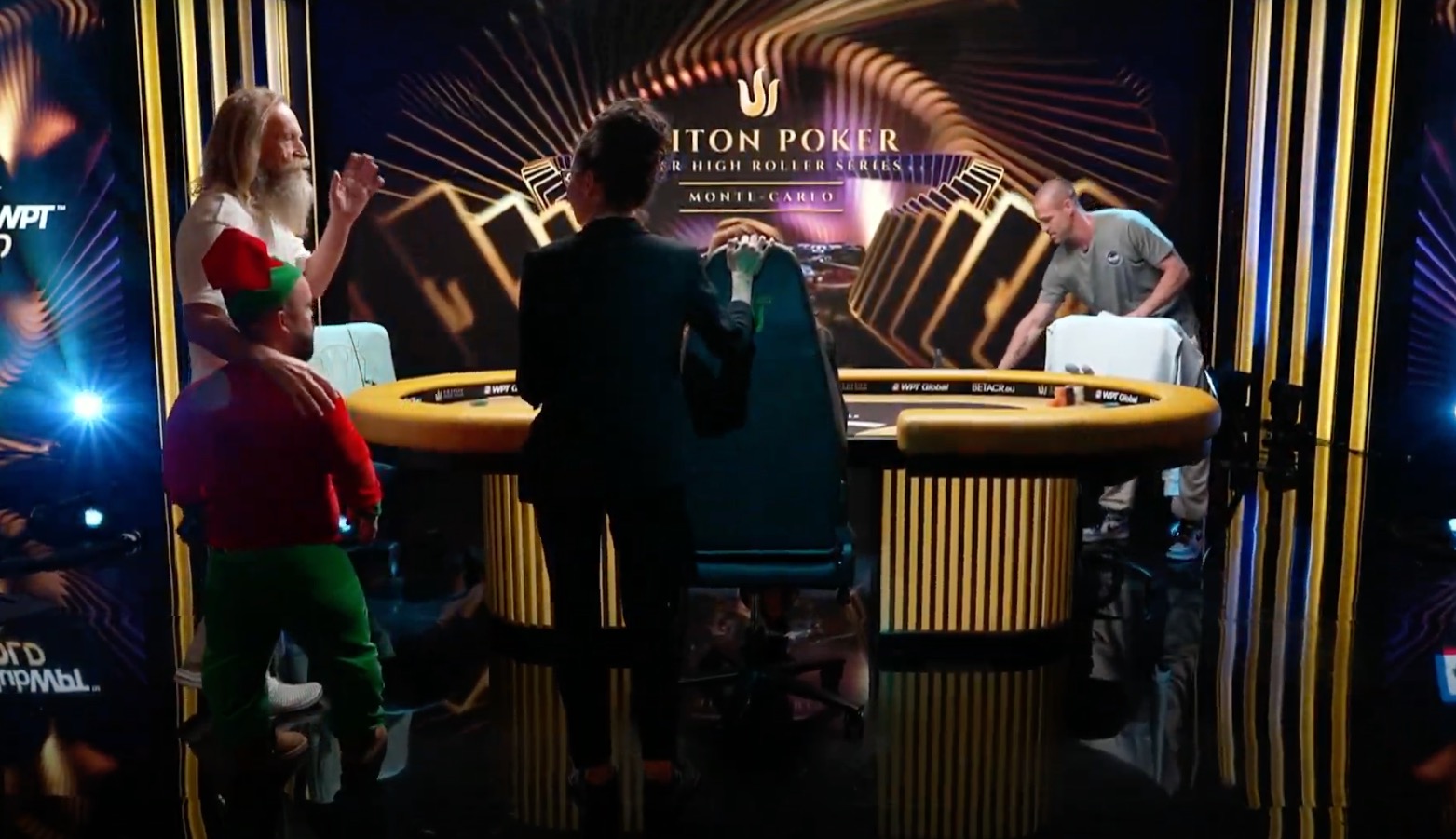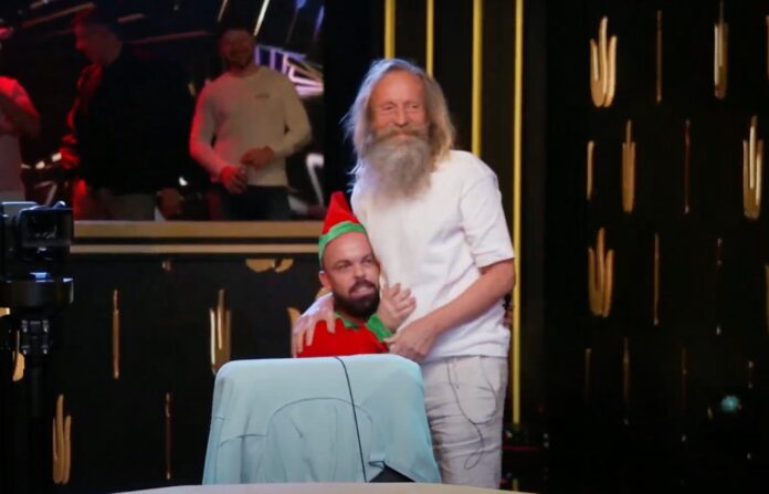 Während andere Spieler an den Rails Pokerkolleg*innen, Lebenspartner, Backer oder Spieler aus ihrem Stable hatten, drückte dem Mann mit dem Weihnachtsrauschebart ein kleiner Elf im Zuschauerraum die Daumen. Und so sehr die Pokerpros hofften, dass der Spieler mit der Lieblingshand 69 (aus verschiedenen Gründen, wie er zugab) ihnen Geschenke in Form seiner Chips machte, umso mehr mussten sie anerkennen, dass ihre Chips zu Korzinin, dem Mann mit den großen Bluffs, wanderten.