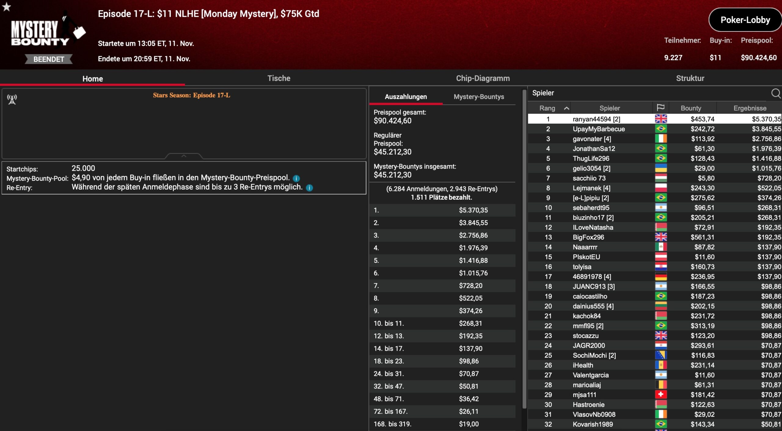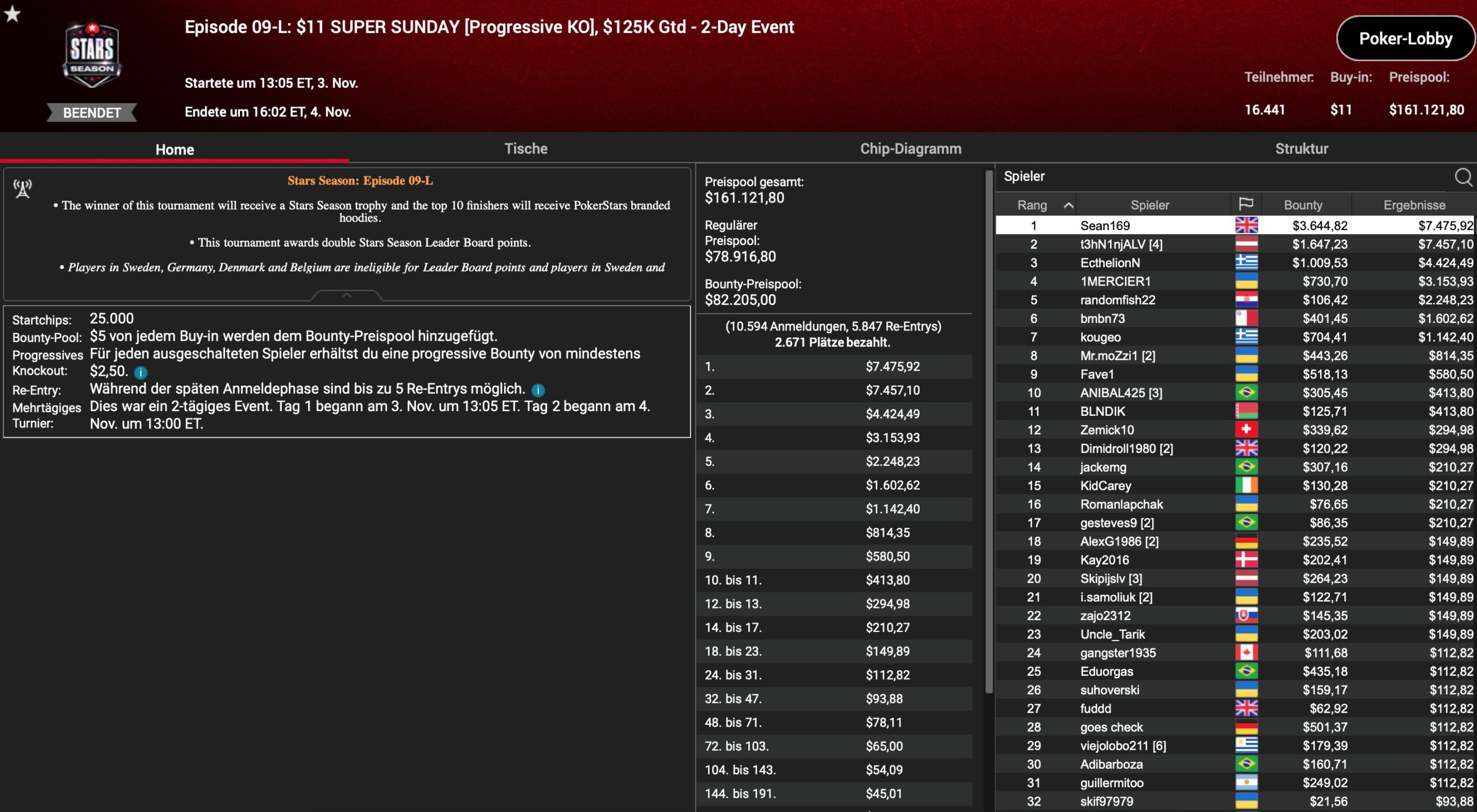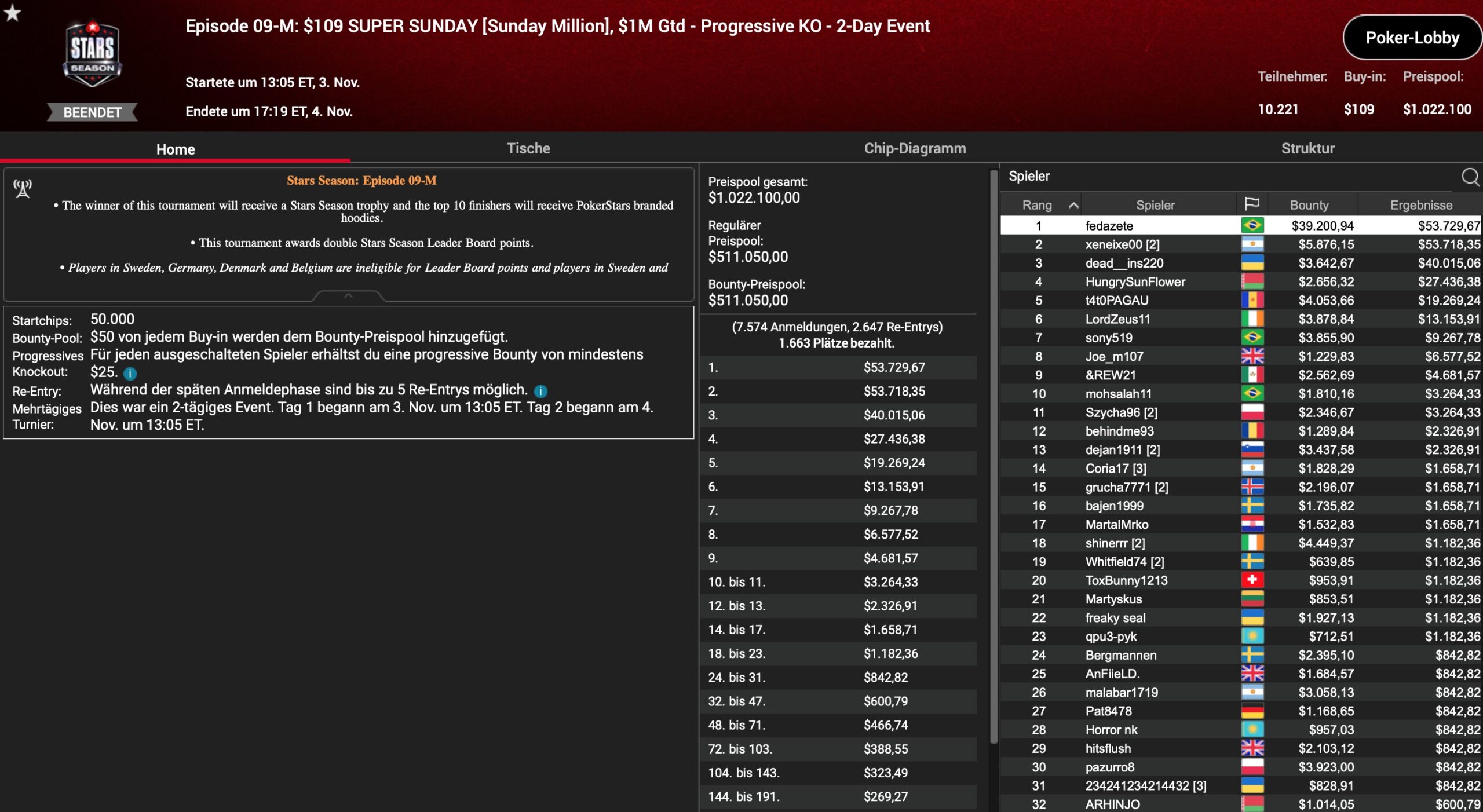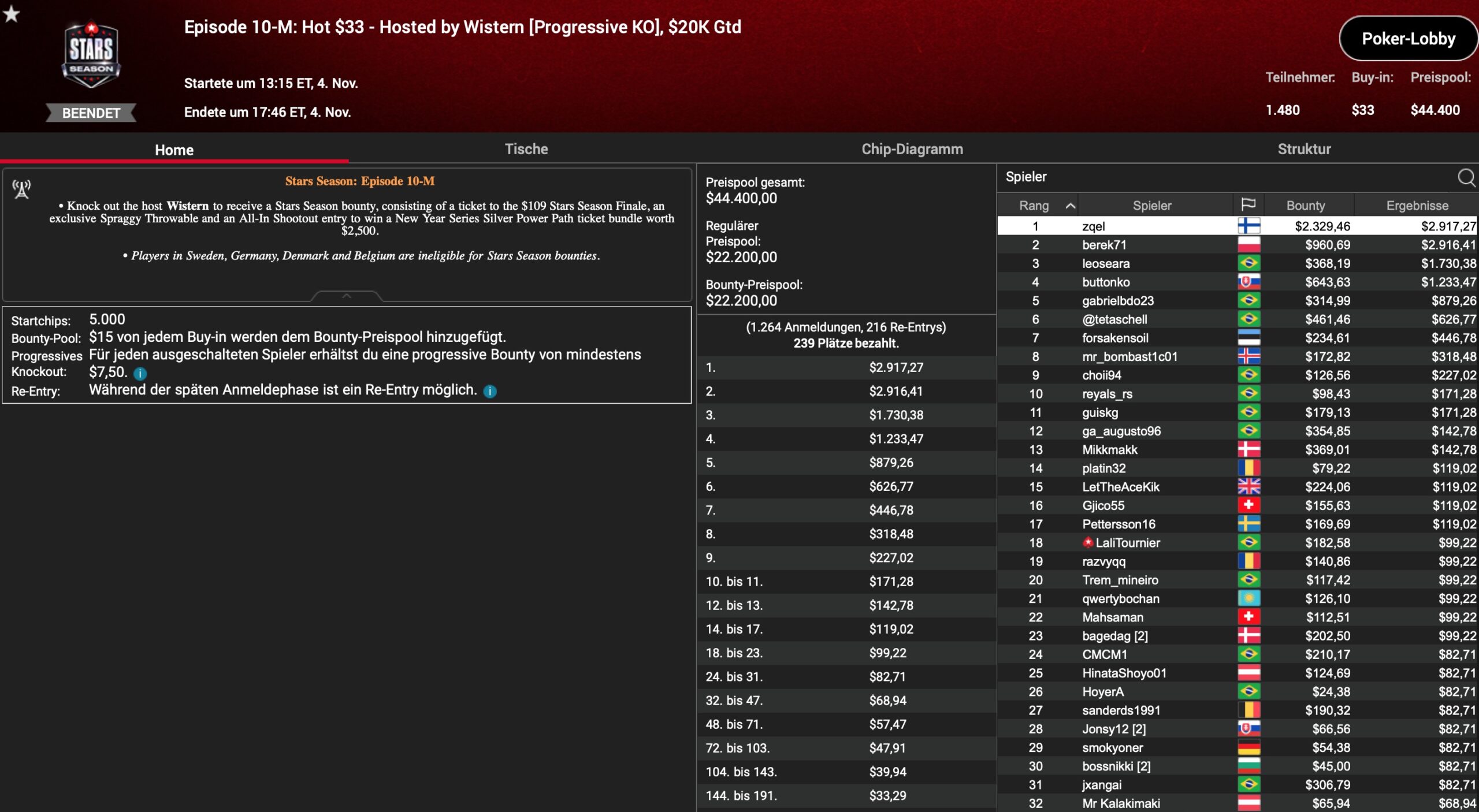 Die 2. Hälfte der Stars Season auf PokerStars ist angebrochen. Nach 16 von 30 Events sind um. In bis zu 3 Buy-In Tiers werden insgesamt 64 MTTs mit Mega-Garantien veranstaltet. Spezielle Episoden erhalten dabei PokerStars Ambassadors als Gastgeber, wie z.B. Fintan „easywithaces“ Hand, Lassa Jagd Lauritsen aka „Wistern“, Benjamin „Spraggy“ Spragg, Parker „tonkaaaa“ Talbot oder Rafael „GM_VALTER“ Moraes. Nach 4 deutschsprachigen Titelgewinnen in den Episoden 02 bis 08, waren weitere Erfolge in den Nummern 09 bis 17 leider Fehlanzeige.