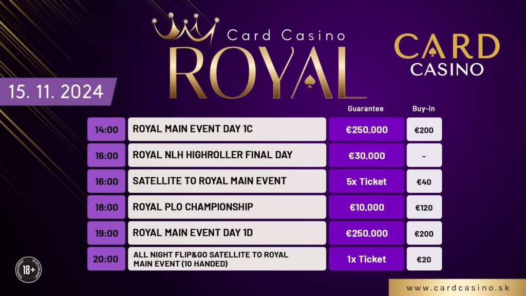 Neben den acht Starttagen im Royal Main Event finden am außerdem noch Flip & Gos statt, mit denen man sich für das Main Event qualifizieren kann.