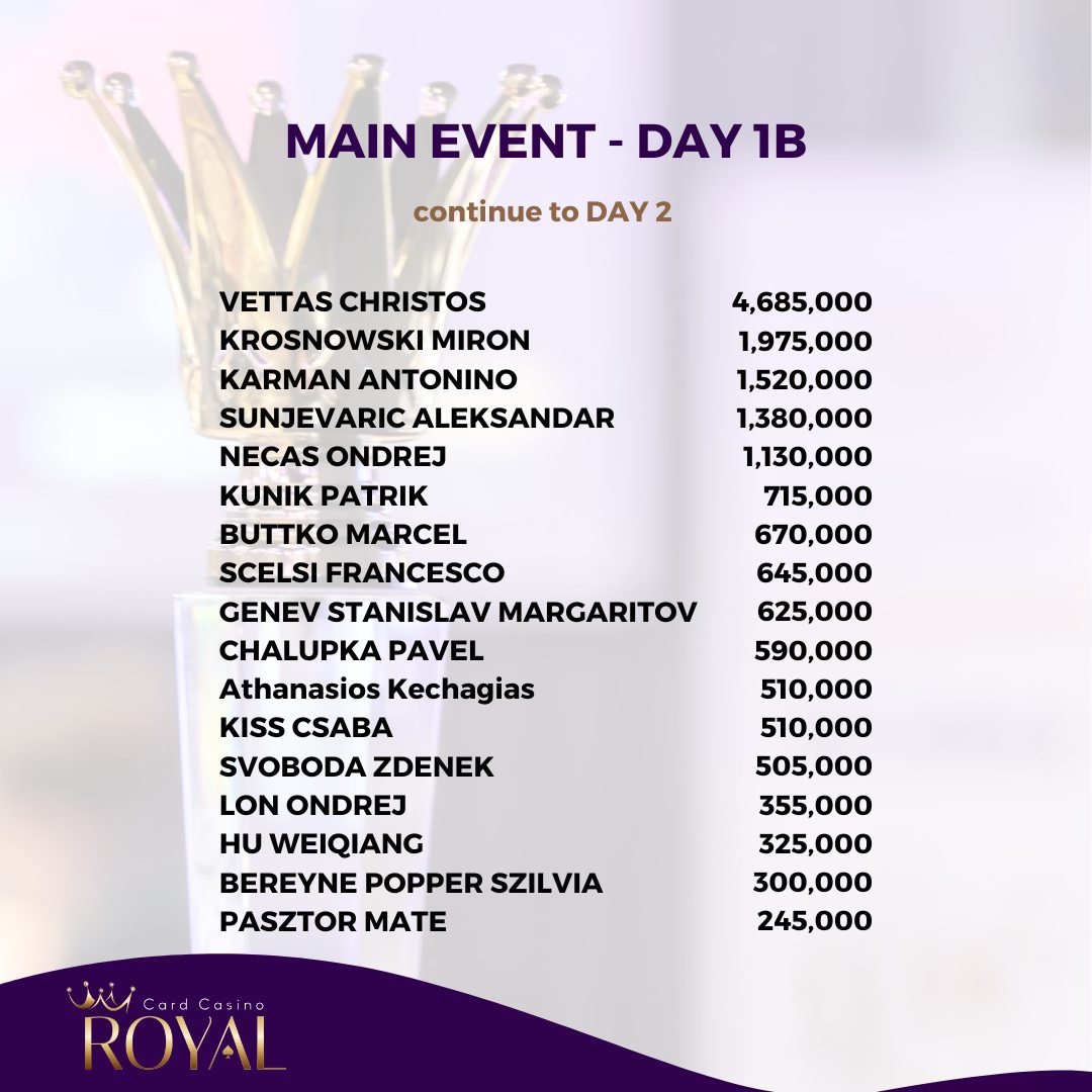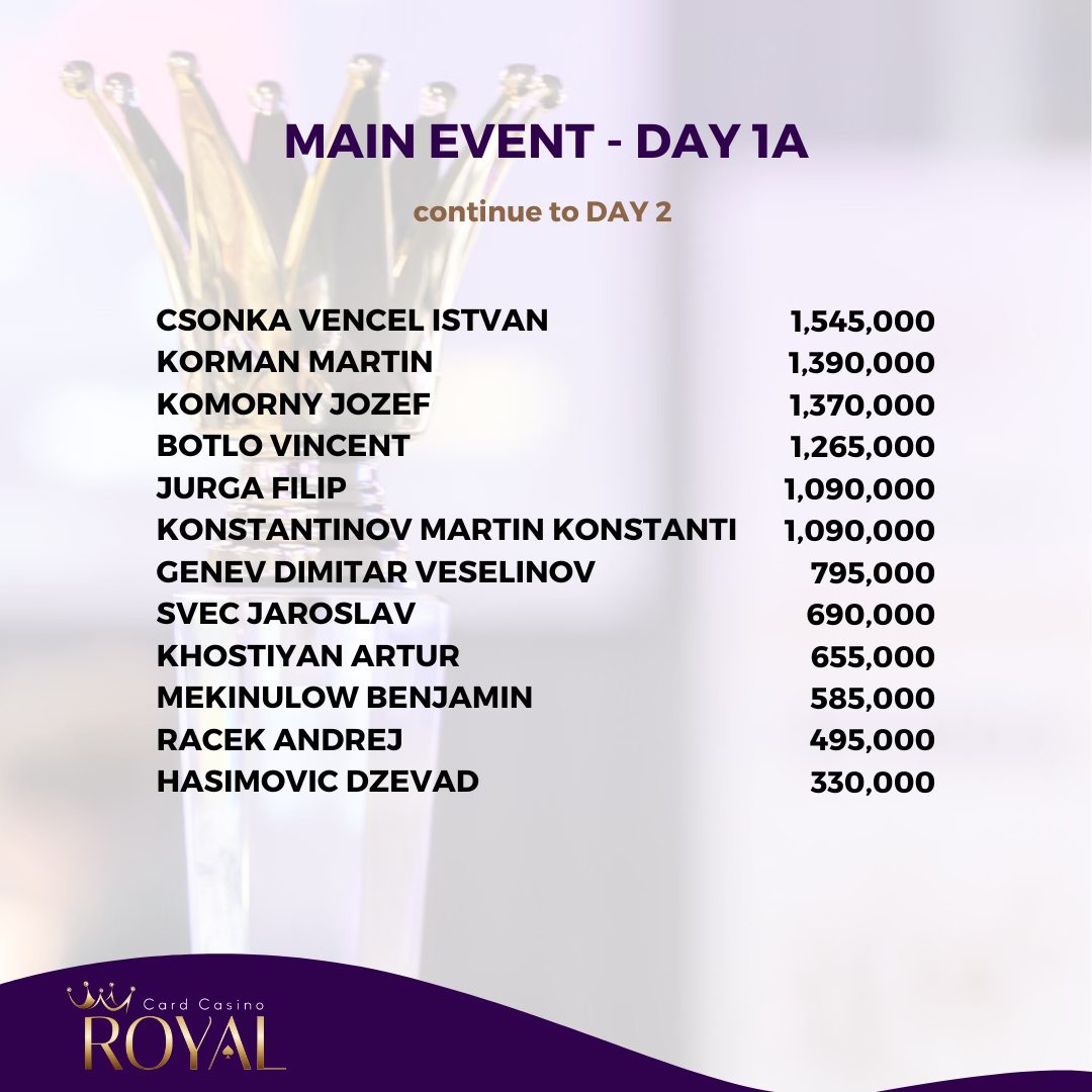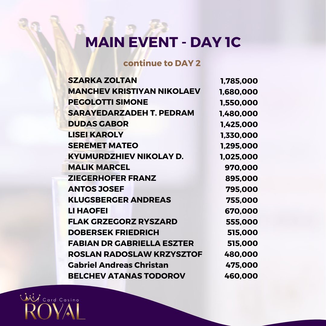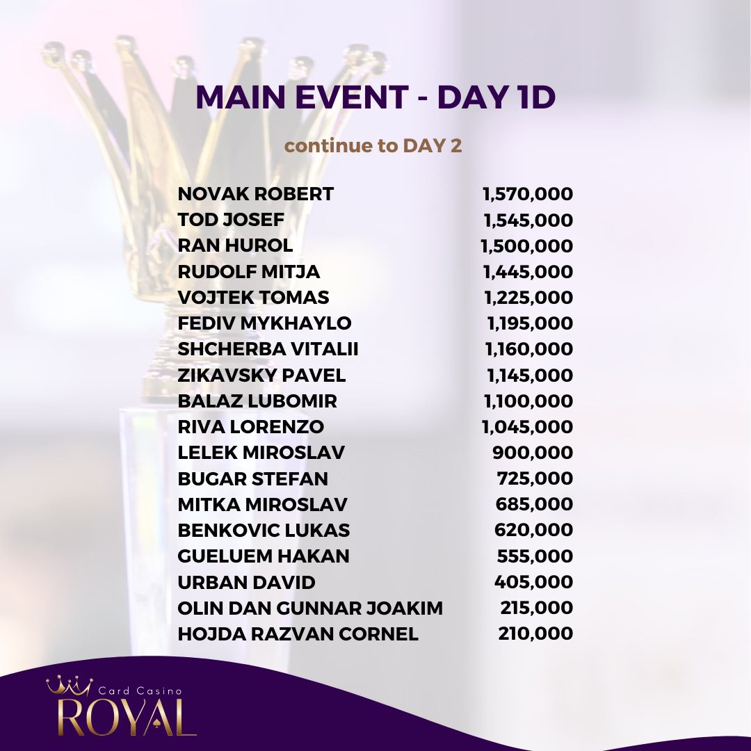 Das €200 Buy-in Royal Main Event im Card Casino Bratislava spielte gestern zwei weitere Starttage aus, 1C um 14:00 Uhr und 1D um 19:00 Uhr.