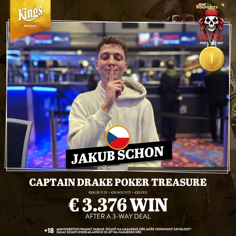 Das €170 Captain Drake Poker Treasure Bounty am Abend im King’s Resort Rozvadov lockte 169 Piraten an die Tische, die zusätzlich noch elfmal die Geldbeutel zückten und Münzen für Re-Entries eintauschten. Dies sprengte die Garantie um das 2,5-fache.