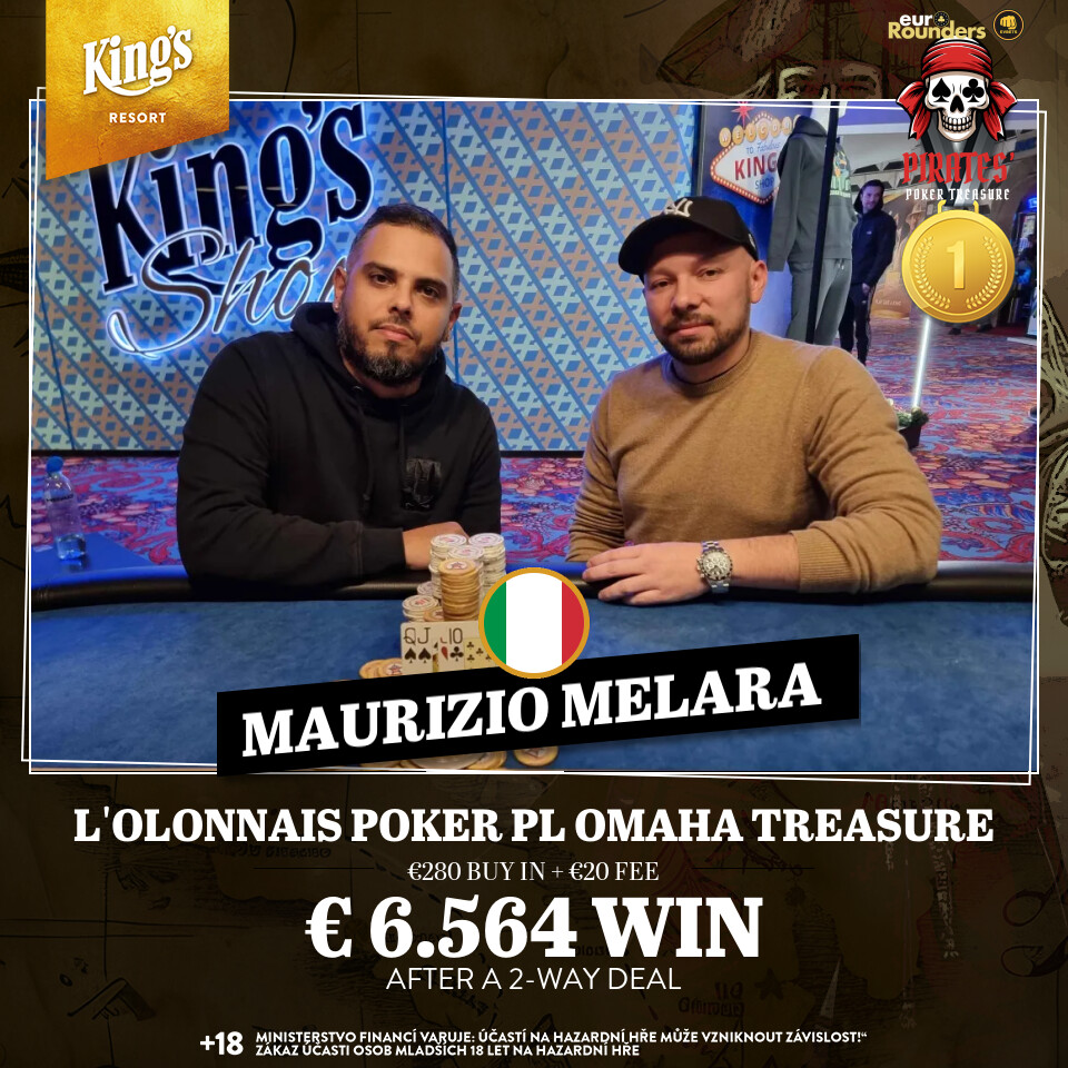 Das Turnier im King’s Rozvadov zog 81 Spieler an die Tische und diese bezahlten außerdem für 25 Re-entries. Das ergab somit einen Preispool von €27.899, der auf die Top 11 verteilt wurde. Nach einem Heads-up Deal waren es die beiden Italiener Maurizio Melara und Francisco Perez, die jeweils den Top-Preis €6.564 mit nach Hause nehmen konnten.