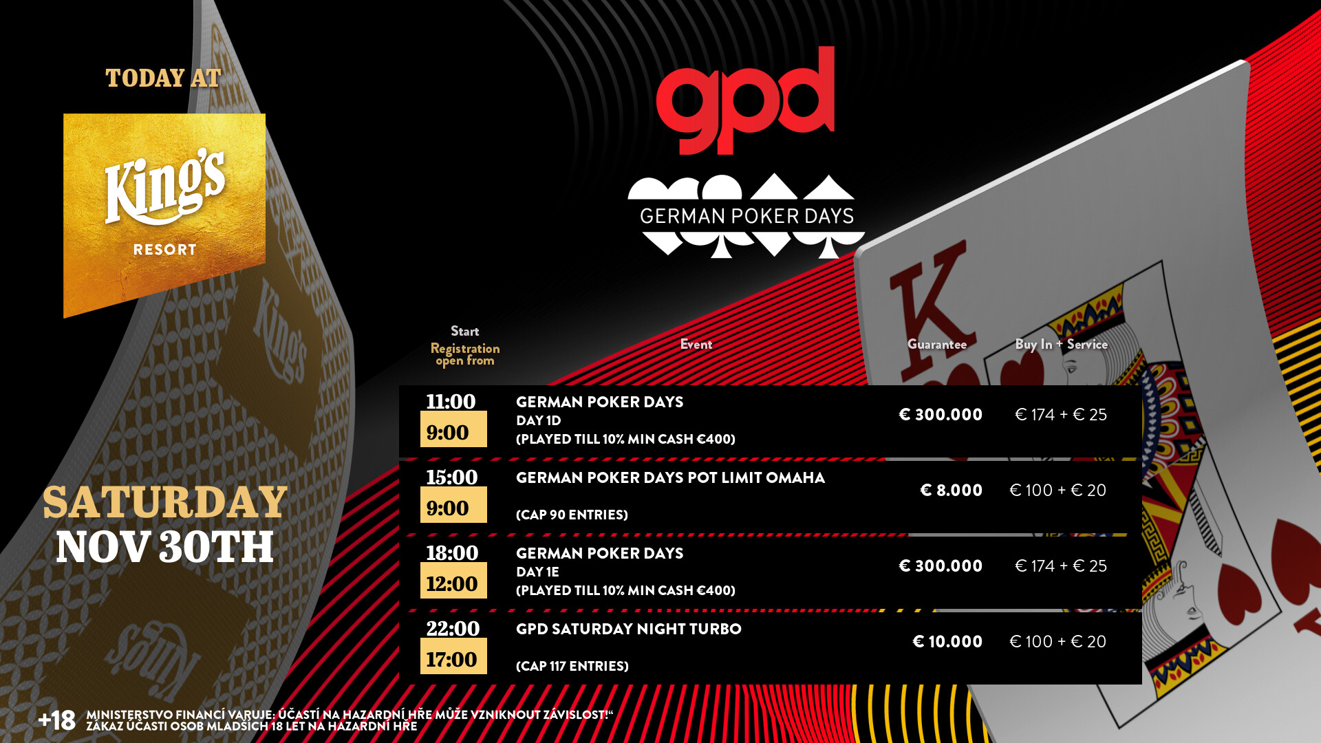 Neben dem Main Event der German Poker Days (GPD) im King’s Resort Rozvadov wurden gestern noch zwei Tagesturniere gespielt: Ein Bounty und ein NLH Morning Turbo!