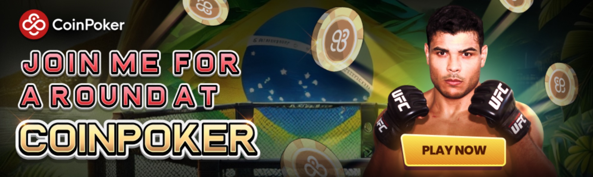 Passend zu seinem Debüt bei CoinPoker lädt der neue brasilianische CoinPoker Ambassador zusammen mit seinem Landsmann Olivio „BigFat“ Gontijo zu mehreren Turnieren ein. Dazu zählen auch zwei Freerolls, die $300 und $500 an Preispools besitzen. Nicht nur die Teilnahme lohnts sich, sondern auch dabei den CoinPoker-Stream zu schauen, in dem es einige Giveaways passend zu dem MMA Fighter geben wird – entweder auf dem CoinPoker Twitch oder dem CoinPoker YouTube Channel.
