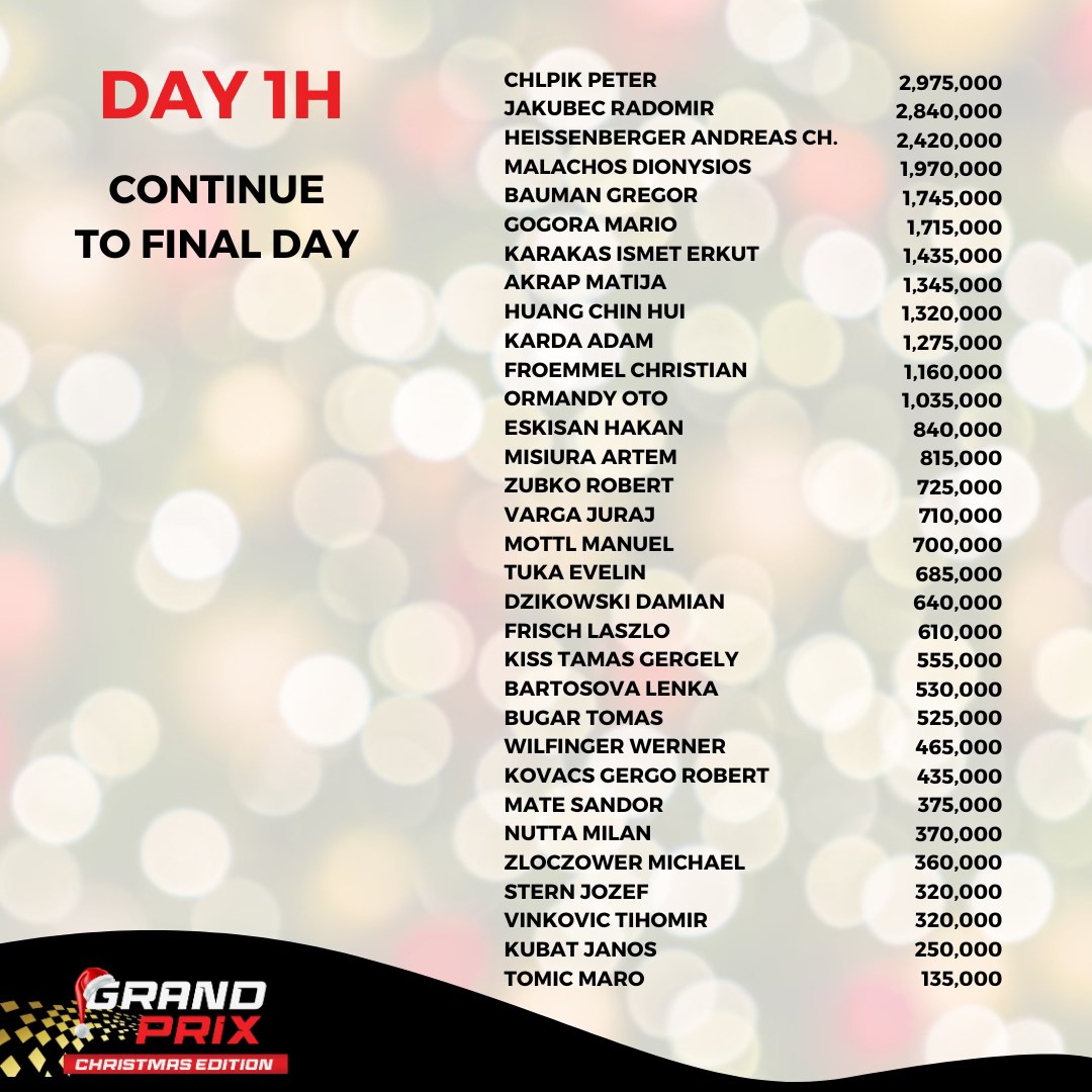 In Flight 1h war es Peter Chlpik, der mit 2.975.000 die meisten Chips am Ende des Flights eintüten konnte. 32 Spieler machten den Schnitt.