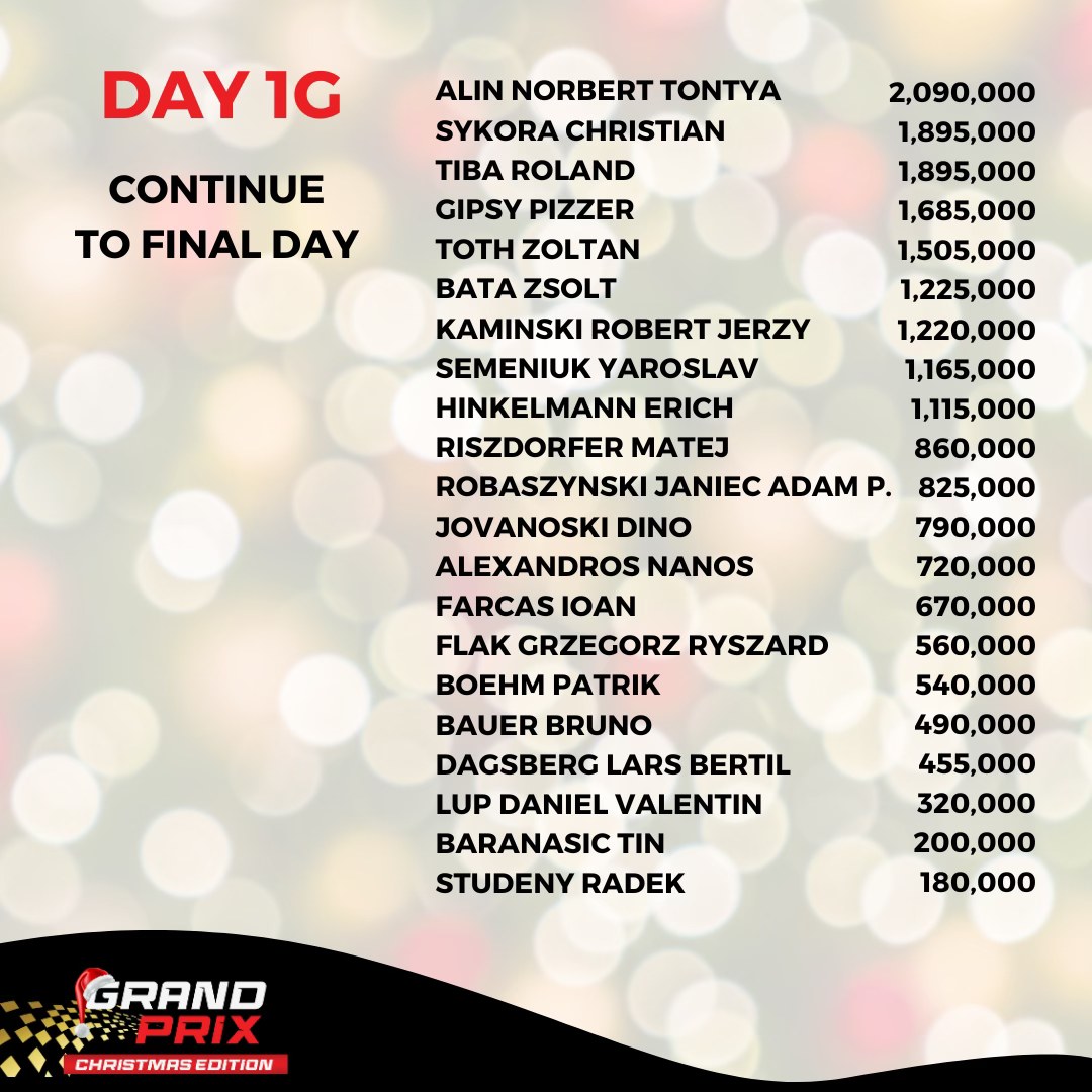 In Flight 1g waren es 204 Entries, Norbert Tontya Alin baute mit 2.090.000 Chips den größten Stack unter den 21 Überlebenden auf.
