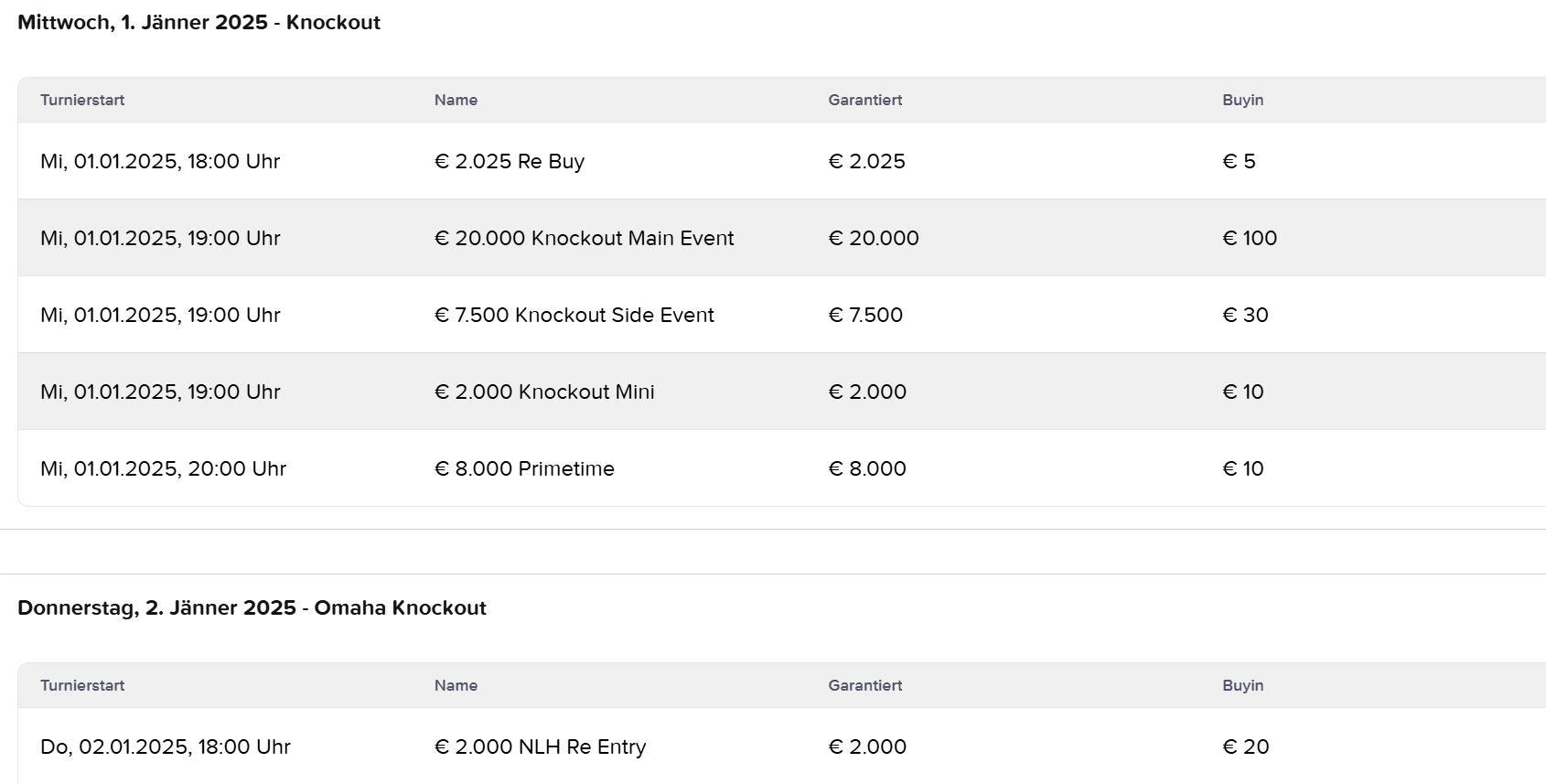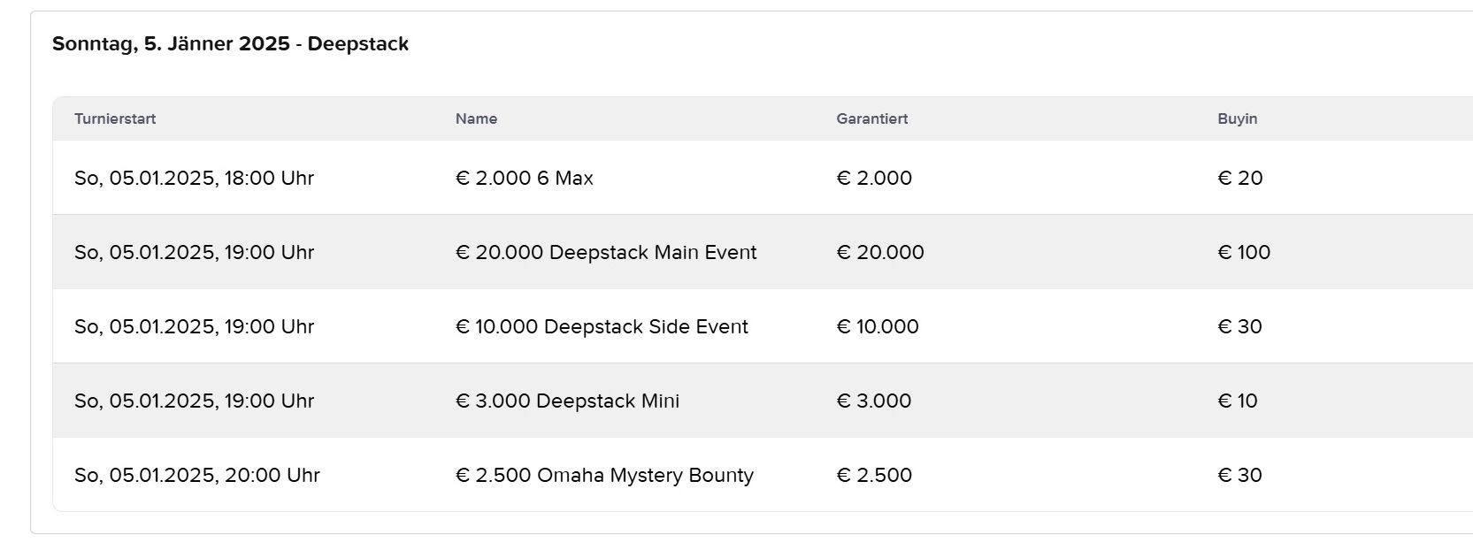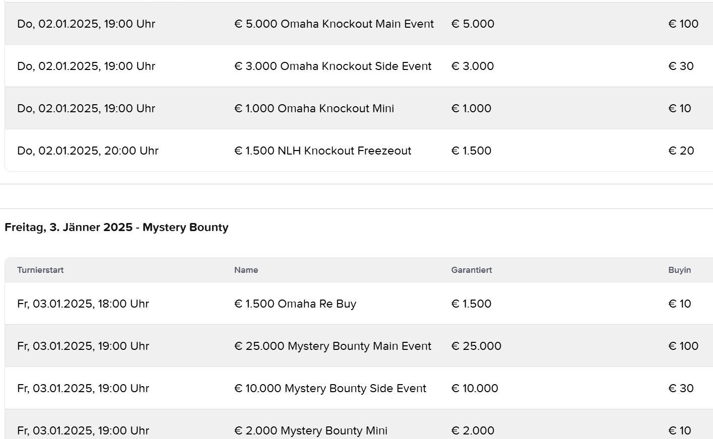 Auch die PLO-Freunde kommen bei diesem Turnierspektakel auf ihre Kosten, und da die Buy-Ins von €5 bis €250 ist für (fast) jede Bankroll etwas dabei.