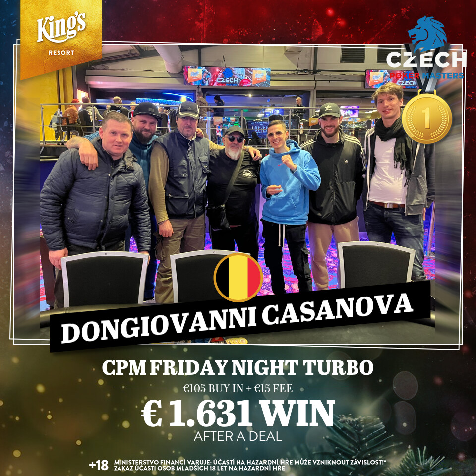 13 Spieler wurden bezahlt und es war der Belgier mit dem Spitznamen „Dongiovanni Casanova“, der nach einem Final Table Deal den Top-Preis von €1.631 mit nach Hause nehmen konnte. Aber auch der Zweitplatzierte Yacine Naciri aus Frankreich gewann €1.621, also nur €10 weniger.