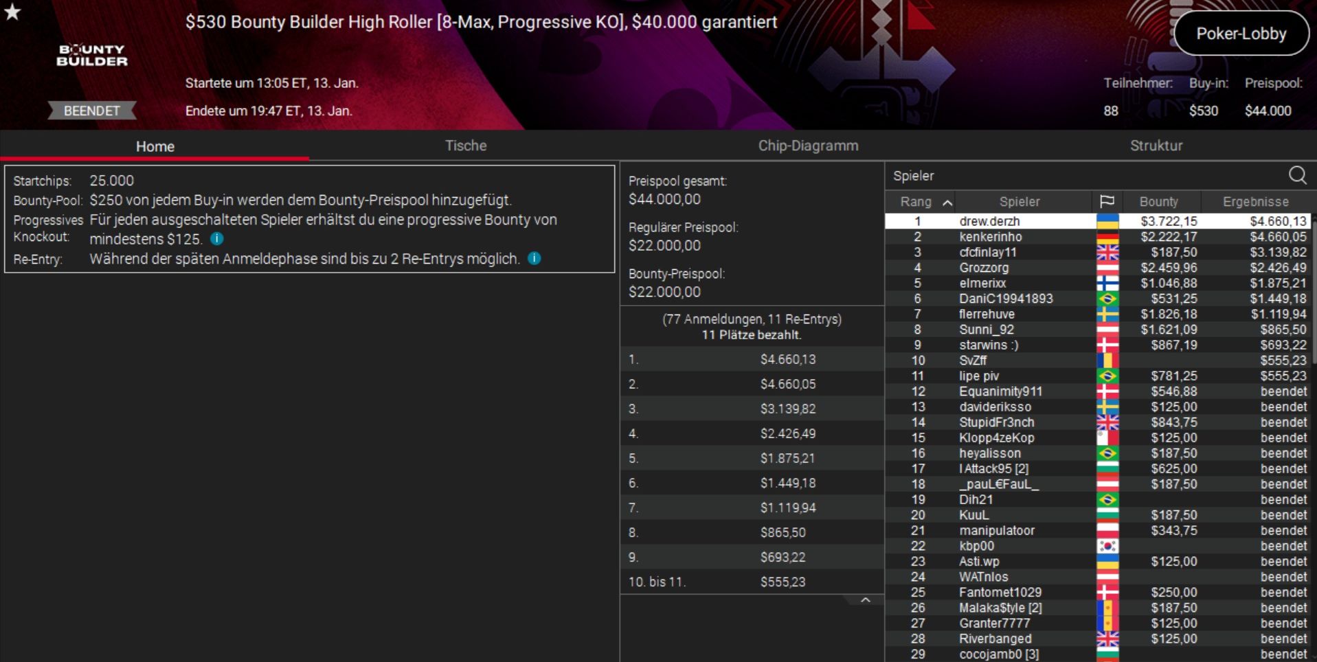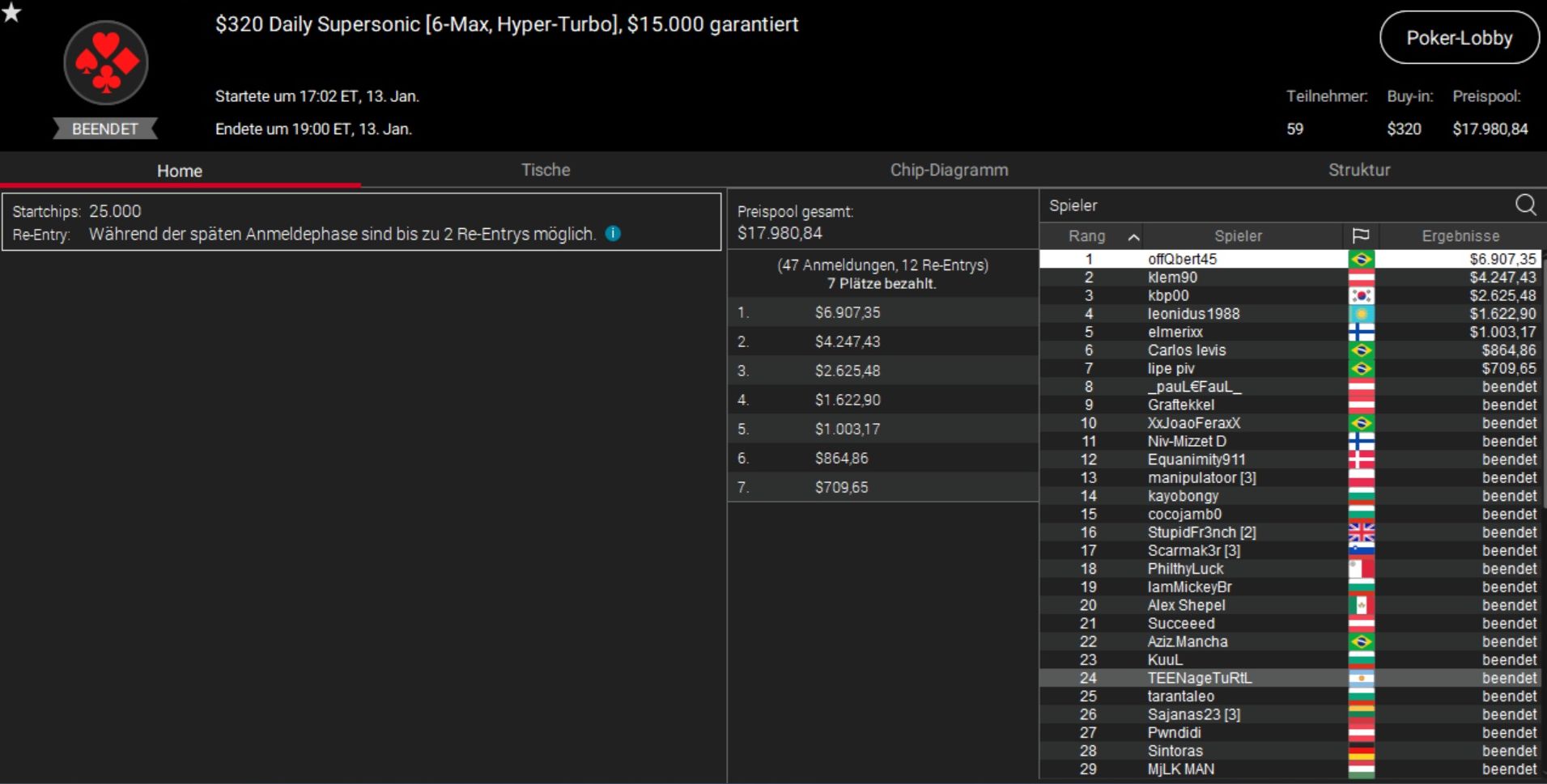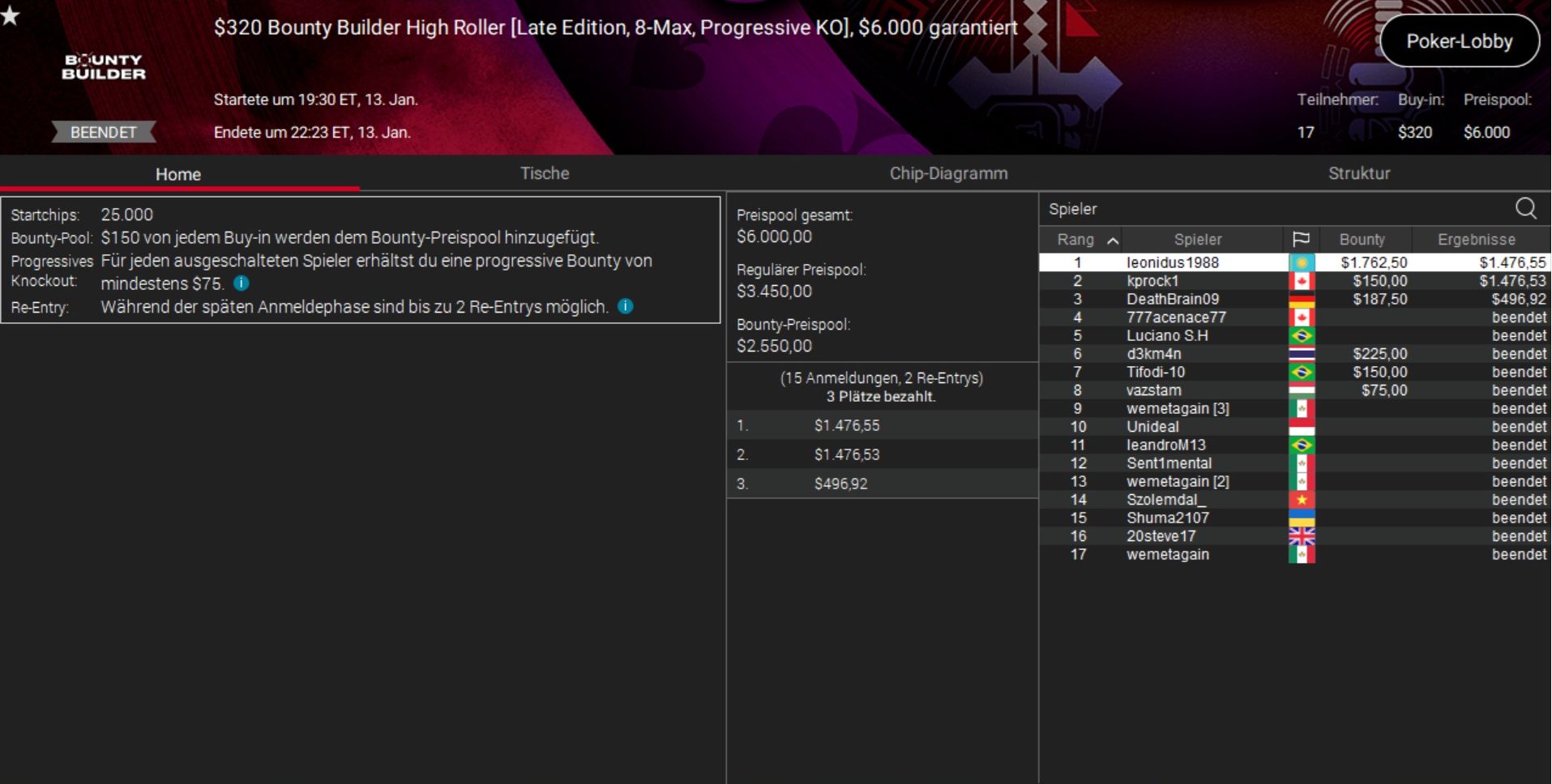 Auf PokerStars wurden am gestrigen Montag die Main Events der New Year Series entschieden. Außerdem wurden einige Side Events und Highroller-Turniere ausgetragen.