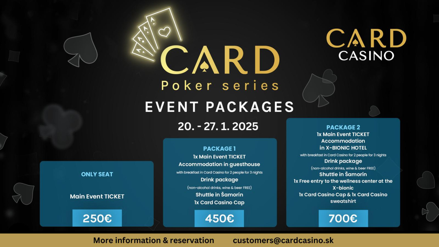 Für die Card Poker Series bietet das Card Casino besondere Packages an, mit denen man sich die Verpflegung und die Unterkunft gleich mit sichern kann.