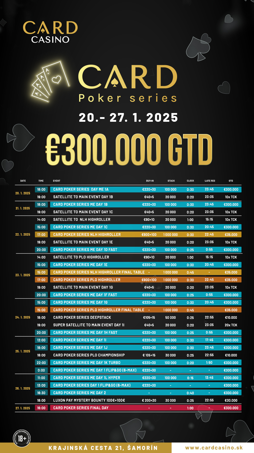 Vom 20. Januar bis 27. Januar veranstaltet das CC SK die Card Poker Series mit einer sensationellen Preisgeldgarantie von €300.000.