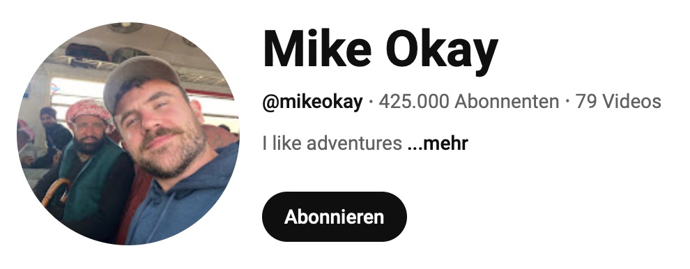 …Mike Okay mag Abenteuer. „I like adventures“ ist zumindest das einzige was als Beschreibung seines Kanals hinterlegt ist, und das trifft es auch. Ganz gleich, ob es um Reisen in irakische Kriegsgebiete, Anhalter-Fahrten durch den Himalaya oder das heimliche Übernachten in gesperrten Teilen der chinesischen Mauer geht – auf seinem Kanal findet ihr solche und noch viele ähnliche Abenteuer.