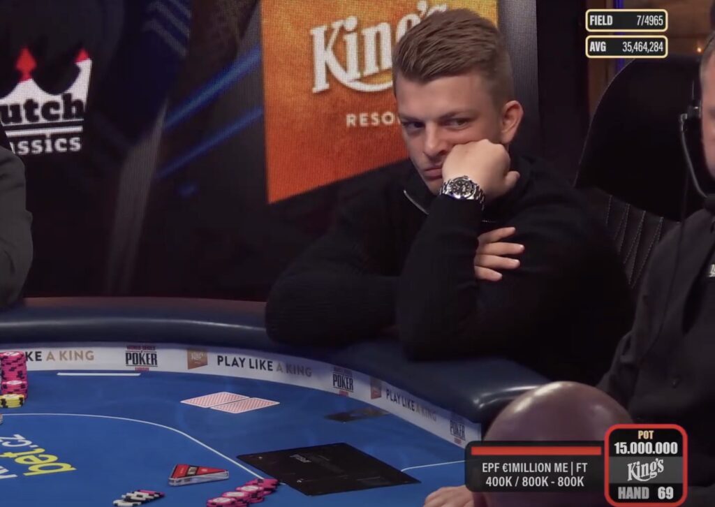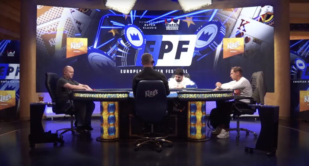 Die letzten 13 von ursprünglich 4.965 Entrys gingen am Dienstag unter den Augen der Twitch- und YouTube Zuschauer*innen in das Finale vom European Poker Festival EPF €1Million Main Event powered bei Dutch Classics & Pokerreis. Dabei waren ihnen € 9.050 aus dem €1.247.900 Preispool im King’s Resort Rozvadov bereits sicher, doch für den Sieg sollte es €163.450 geben. Neben vielen bekannten King’s-Gesichtern, waren auch noch zwei heiße Eisen aus Deutschland mit ihm Rennen.