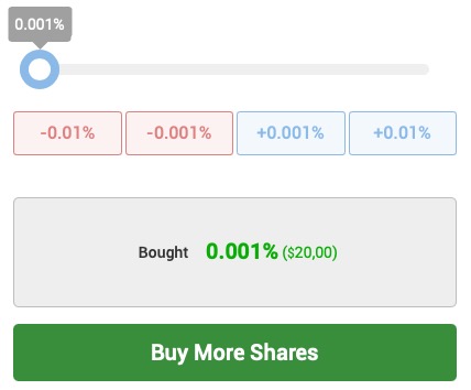 ACHTUNG: Über die Eingabe der Prozentzahl, die ihr an den $2.000.000 erwerben wollt, könnt ihr unter Umständen nicht unter 0,01% (also $200) gehen. Nutzt ihr stattdessen den Schieberegler oberhalb, dann könnt ihr euren Anteil auch deutlich kleiner (oder größer) in 0,001%-Schritten ($20) gestalten. Wer zum Beispiel für $20 zum Spaß gerne mit Daniel Negreanu sweaten möchte, kann dies jetzt via Pokerstake tun. Der maximale Anteil (Purchase Cap) liegt bei 0,05%, also bei $1.000, die ihr Daniel Negreanu für die WSOP in die Hand drücken könnt. Alles solange der Vorrat reicht.