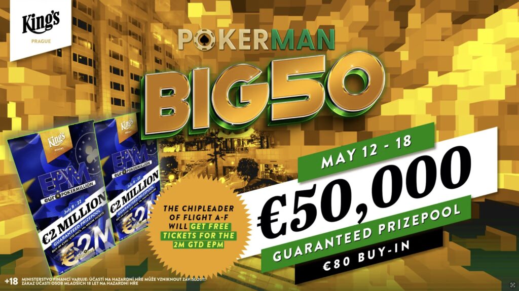 Die 5. von insgesamt 8 Quali-Möglichkeiten (7 Starttage + 1 Flip and Go) vom beliebten PokerMan BIG50 nahmen am Freitag 64 Entrys wahr. Die 80€ Startgeld wurden außerdem für 46 Re-Entrys bezahlt. Bei 110 Total Entrys und 10% Final-Qualifikant*innen sollten sich genau 11 für den sonntäglichen Showdown im Hilton Hotel Prag qualifizieren.