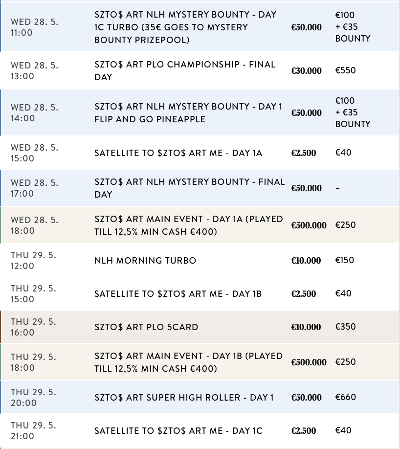 Heute geht es im King’s Resort Rozvadov weiter mit dem Tag 1H Turbo um 11:00 Uhr und dem Flip & Go um 14:00 Uhr für das €175 DPT Main Event. Das Finale findet dann direkt um 17:00 Uhr statt. Um 18:00 Uhr gibt es zum Abschluss auch noch ein €350 DPT High Roller mit einer €30.000 Garantie.
