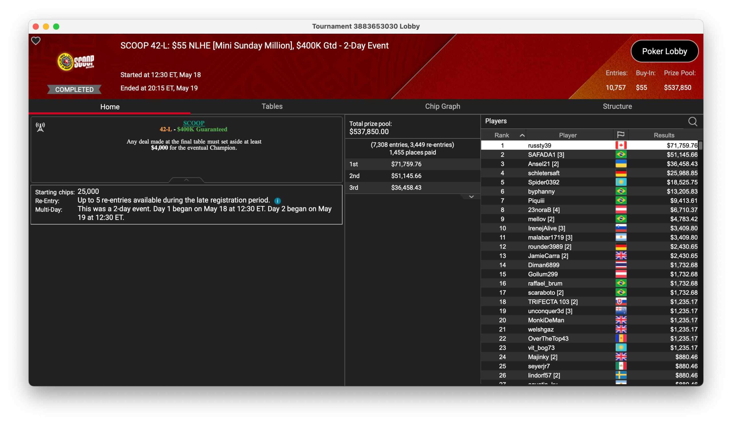 „hello_totti“ ging aus dem Deal als Zweitplatizerter mit $100.787. Platz 3 wurde Samuel „€urop€an“ Vousden für $69.274.