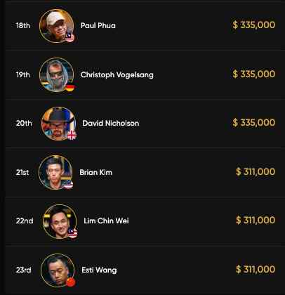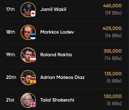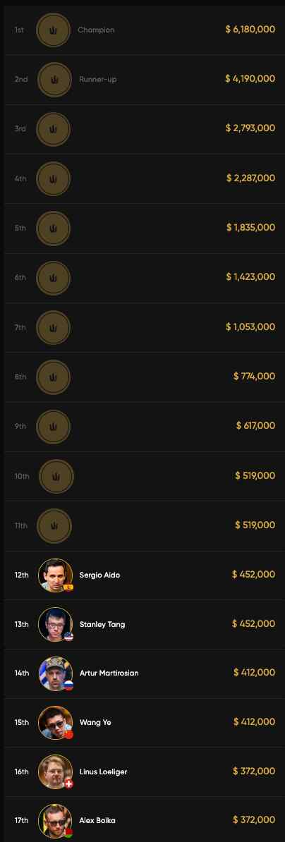 Auf Platz 17 gehen die Payouts mit $79.000 los.