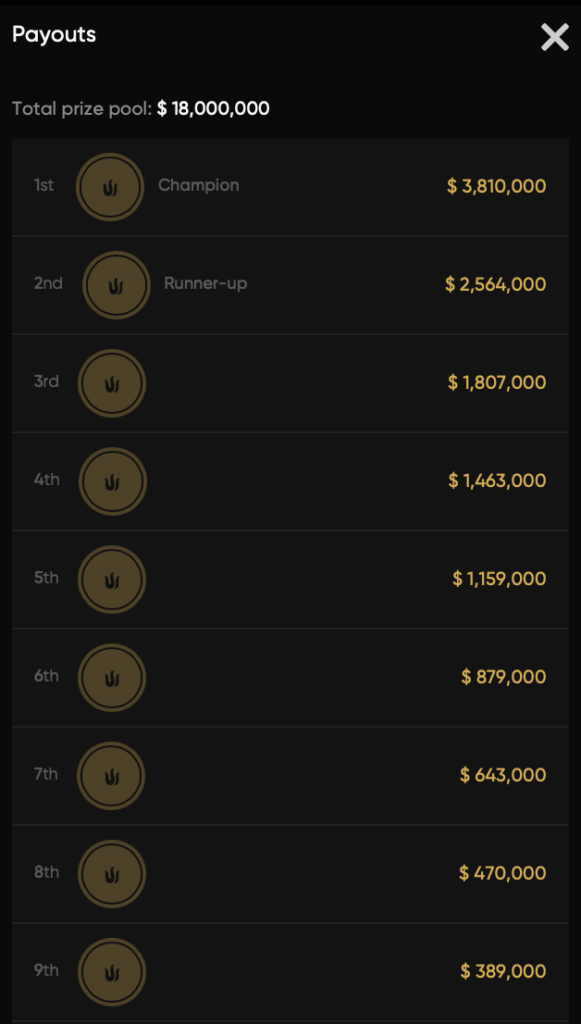 Hier die bisherigen Payouts und verbleibenden Chipcounts: