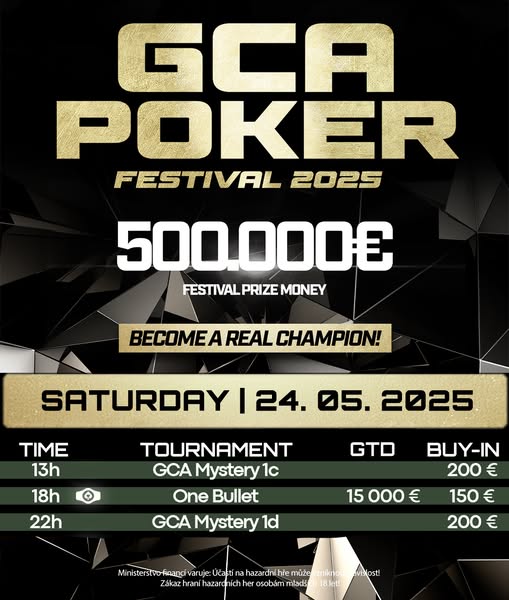 Heute geht es im GCA Pokerraum um 13:00 Uhr weiter mit dem Tag 1C des €200 Mystery (€100.000). Um 18:00 Uhr steht das €130+20 One Bullet Championship (€15.000 GTD) auf dem Programm und um 22:00 Uhr der Tag 1D des €200 Mystery (€100.000).