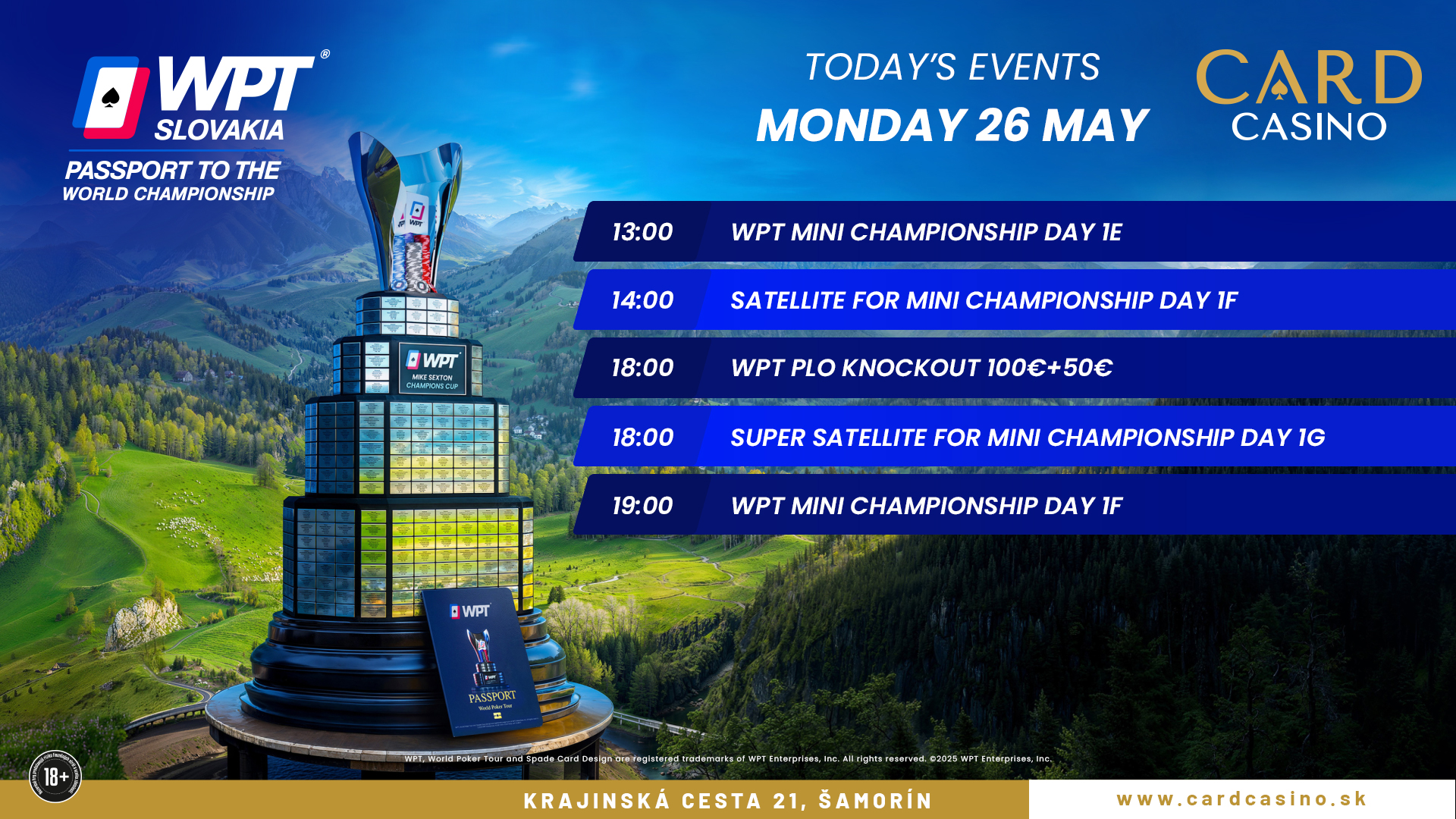 Das erste Wochenende der World Poker Tour (WPT) Slovakia Festival im Card Casino Samorin nahe Bratislava mit mehr als €1.000.000 Garantie ist zu Ende gegangen.