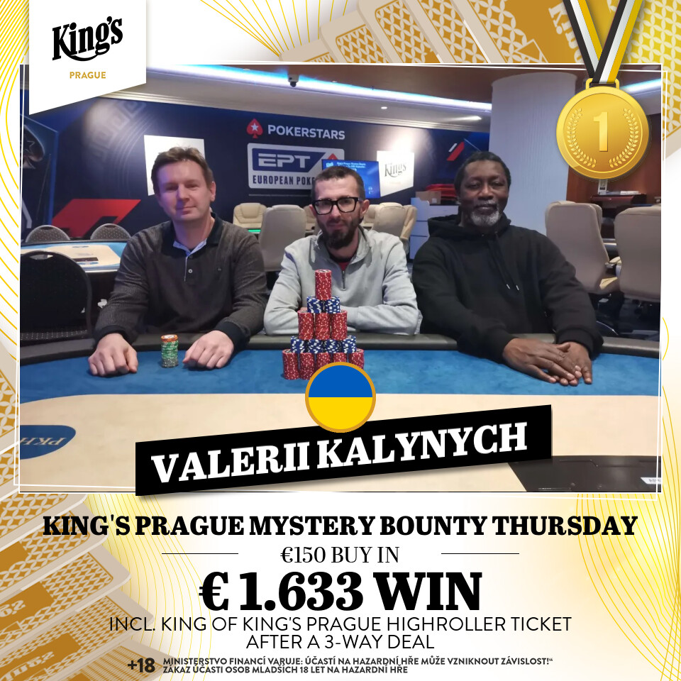 €150 King’s Prague Mystery Bounty Thursday (€12.000 GTD; 2x King of King’s Tickets inkl.)