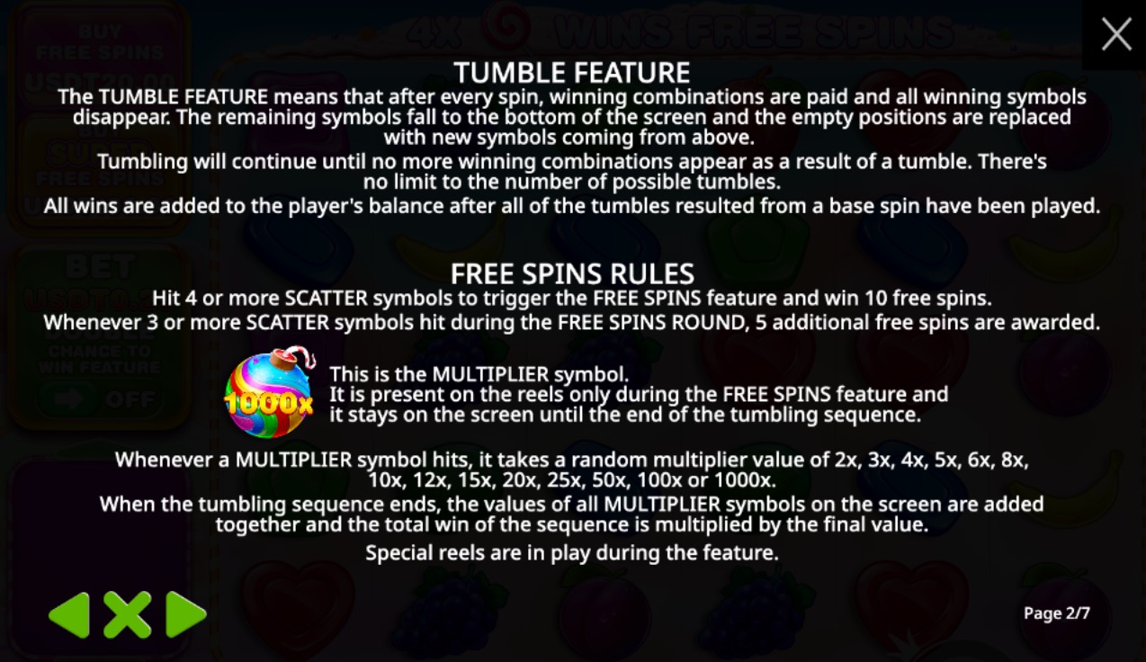 Sweet Bonanza ist ein Slots Game, bei dem es zum einen darum geht möglichst viele gleiche von 9 möglichen Süßigkeiten (Sweets) auf den entsprechenden Gewinnlinien zu treffen. Zum anderen soll mit dem SCATTER Symbol, in diesem Fall einem Lolli, das Bonus „Tumble Feature“ freigespielt werden, das Multiplier zwischen 2x und 1.000x auf den zugrundeliegenden Gewinn beschert. Der maximale Multiplier war in dieser Woche fällig und machte einen Crypto Slots Spieler zum Millionär!