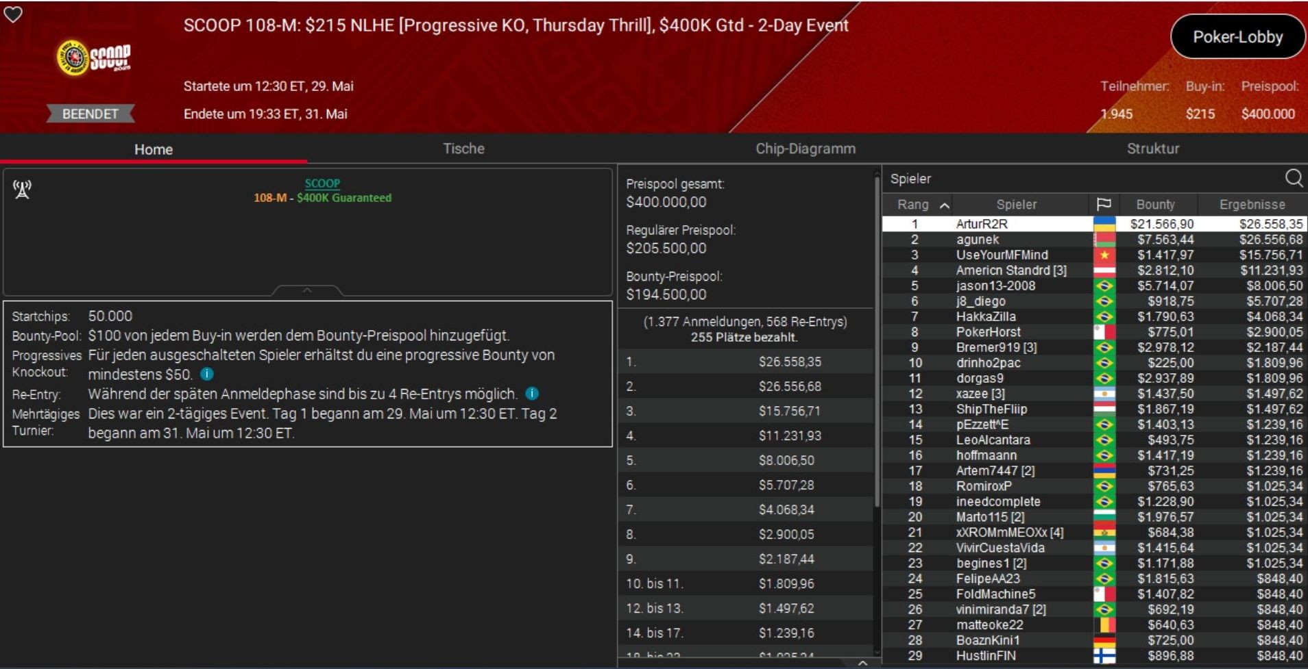 Bei der SCOOP, der PokerStars Spring Championship of Online Poker, werden die letzten Turniere absolviert und die deutschsprachigen Spieler sind weiterhin erfolgreich.