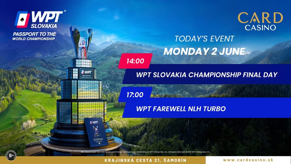 Die WPT Slovakia im Card Casino Samorin geht heute in ihren großen Finaltag, an dem der Sieger des Main Events und Gewinner von €101.670 + ein WPT-Package gesucht wird.