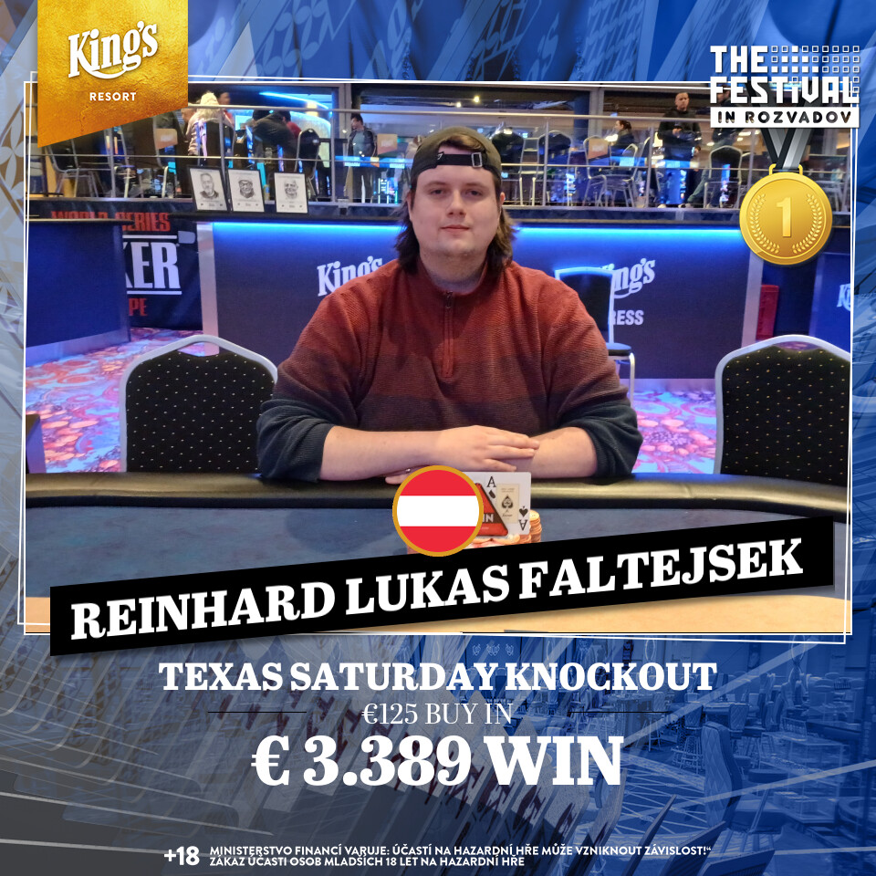 Am späten Abend kamen 153 Bounty-Freunde zusammen und bezahlten außerdem für 38 Re-Entries, was einen Preispool von €20.055 ergab. Dieser wurde auf die Top 27 Spieler verteilt und der Österreicher Reinhard Lukas Faltejsek konnte sich besonders über den Top-Preis von €3.389 freuen.