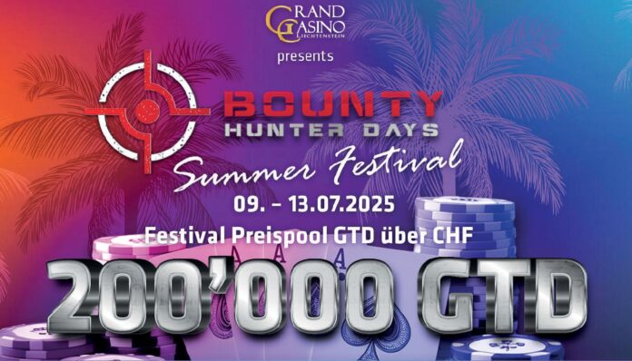 Im Grand Casino Liechtenstein (GCLi) findet zwischen 09. und 13. Juli 2025 das Bounty Hunter Days (BHD) Summer Festival powered by poker-trip.de statt – da gibt es mehr als CHF 200.000 über alle Turniere hinweg.