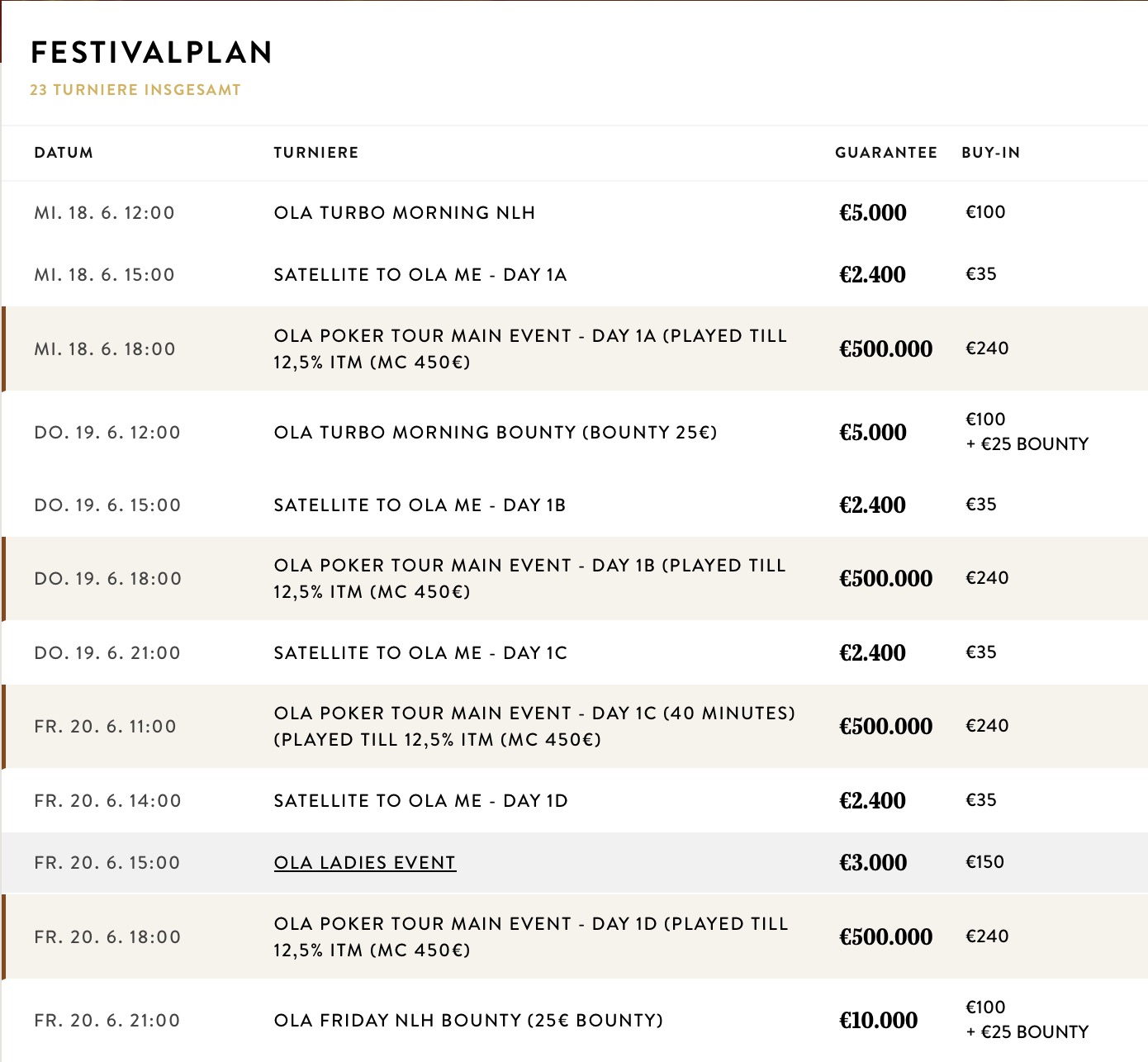 Hier werden für ein Startgeld von €80 fette €50.000 Preisgeld garantiert, häufig gibt es dabei ein Overlay.