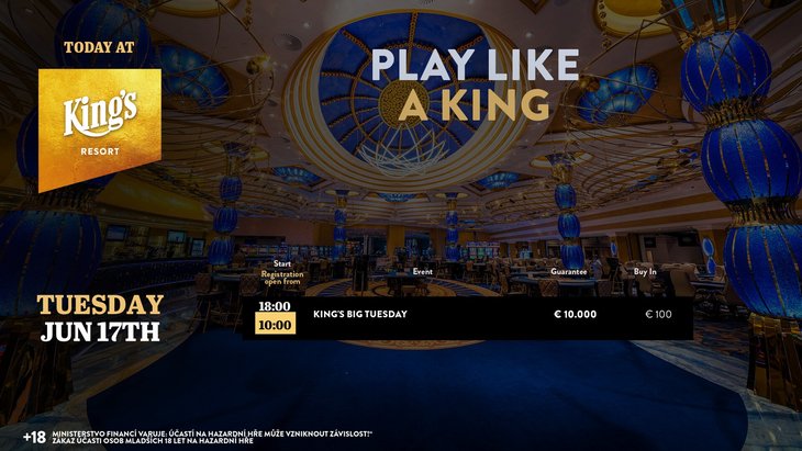 Im King’s Resort Rozvadov steht heute das €100 Big Tuesday mit einer Garantie von €10.000 auf dem Turnierplan.