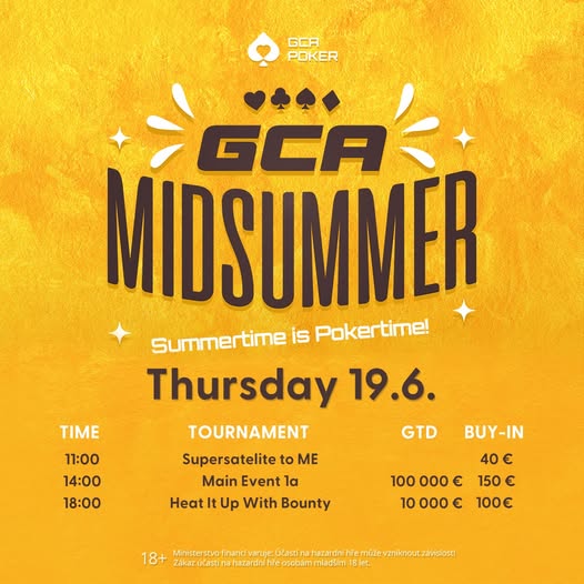 Im GCA Pokerroom 2.0 des Grand Casino As (GCA) startete am Mittwoch das GCA Midsummer Festival mit dem €53+€7 GCA Midsummer Warm-Up Event.