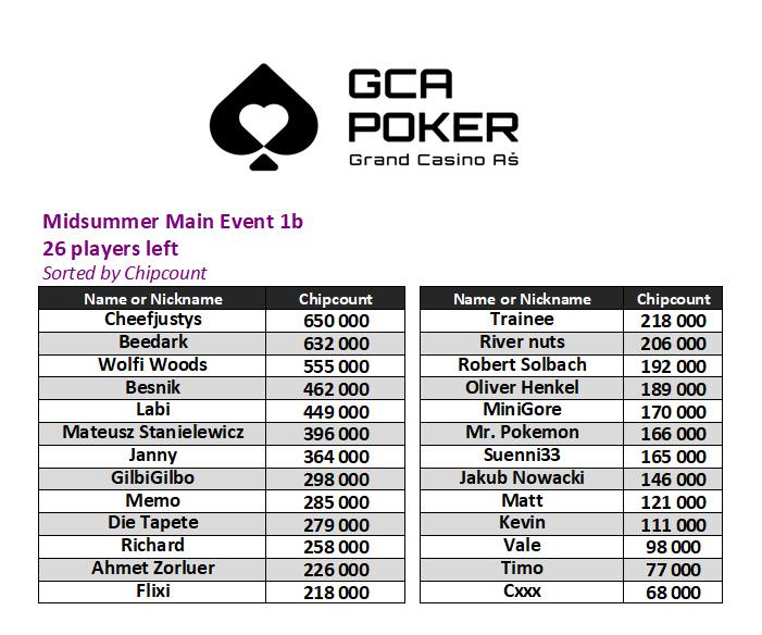 Im Grand Casino Aš wurde gestern im Rahmen des GCA Midsummer das €80 Short Night und zwei Flights für das €150 Main Event gespielt.