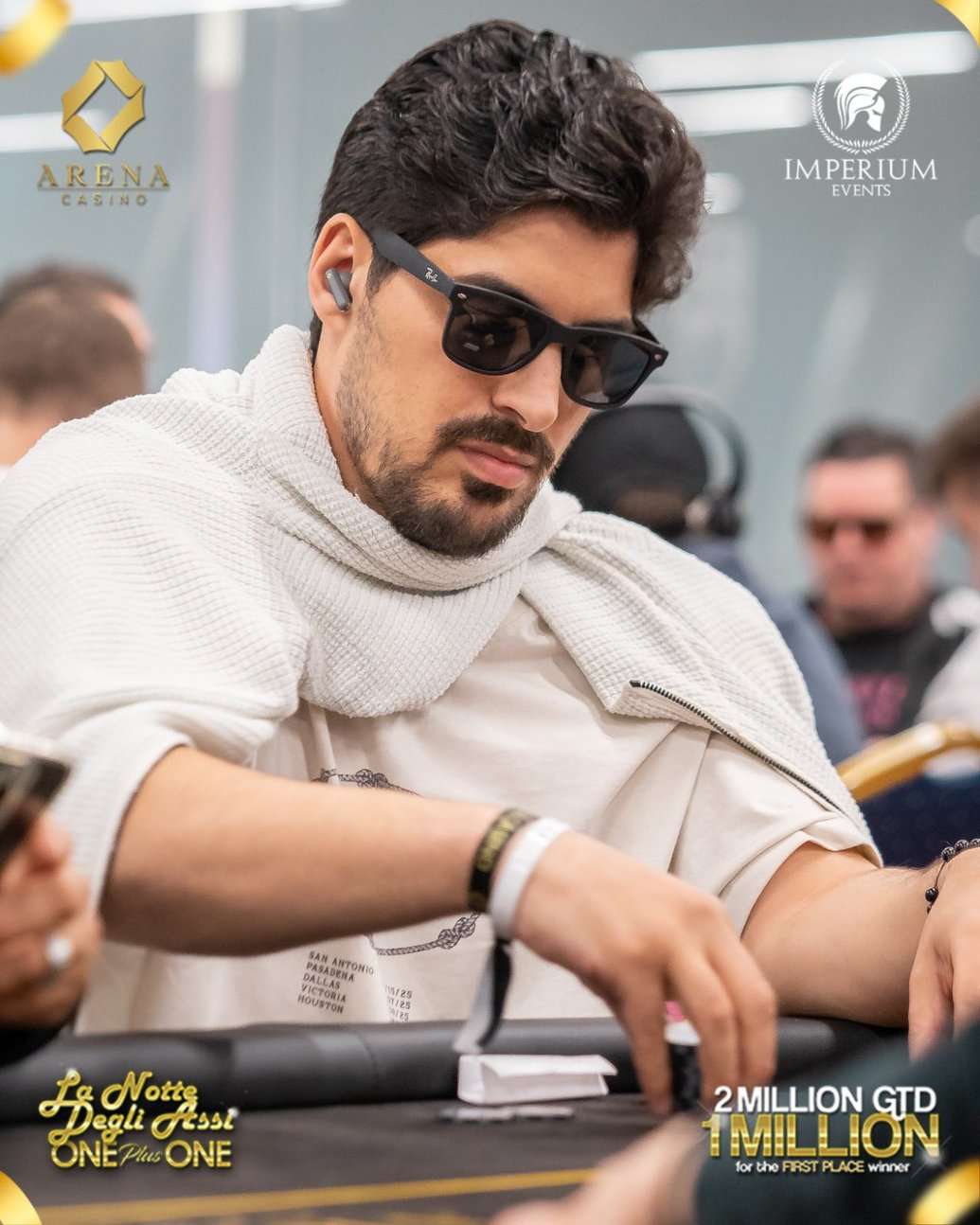 Die La Notte degli Assi ONE plus ONE ist im Arena Casino Tirana ist in vollem Gange. Am Samstag wurden die Flights in 1F und 1G ausgespielt. Auch viele deutschsprachige Spieler waren in Albanien am Start, um ihre Chance auf den €2M gtd Preispool zu wahren, aus dem 1 Million allein an den Sieger geht. So eine Gelegenheit ließ sich auch Poker-Weltmeister Hossein Ensan nicht entgehen, der Starttag 1F erfolgreich absolvierte! – Heute findet mit Flight 1H der letzte Starttag in dem 4-Day-Event statt.
