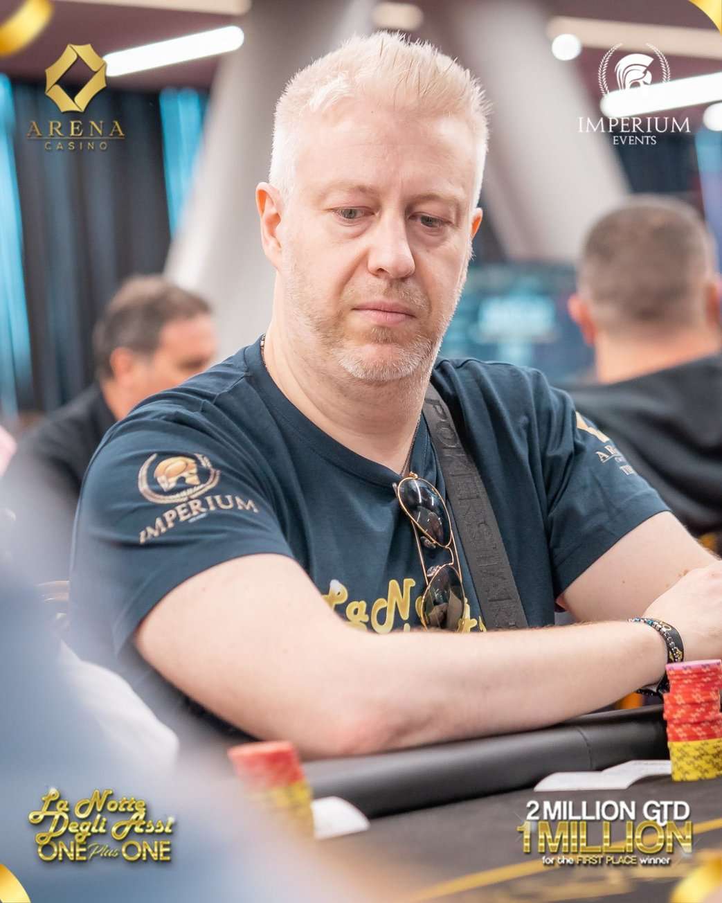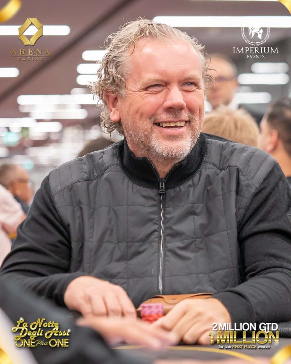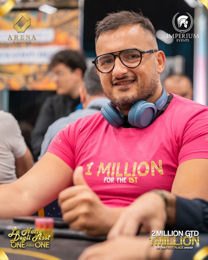 Als die Sonne schon wieder aufgegangen war, wurden die letzten Hände im vorletzten Flight der La Notte Degli Assi ONE plus ONE gespielt, die ihrem Namen alle Ehre machte. Die 17 Level überstanden 53 Spieler. Darunter waren wieder einige Spieler aus der D-A-CH-Region, allen voran der österreichische High Roller Harry Casagrande. Der Fan Favorite beendet mit 552.000 Chips den Starttag und lag damit in den Top-10 des Chipcounts!