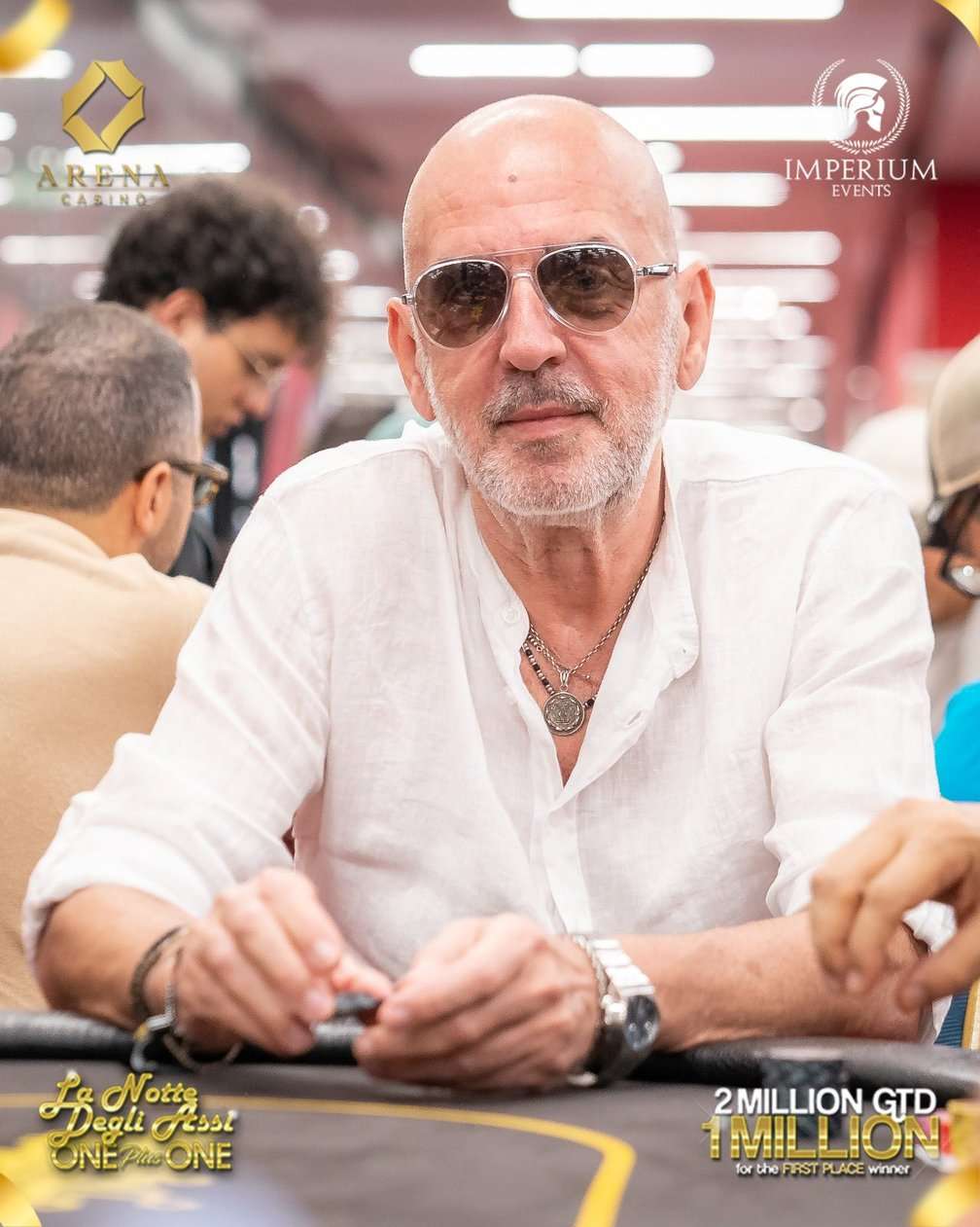 Eins plus eins ist die einfache Rechnung beim Main Event der La Notte Degli Assi in Albanien. Das Ergebnis sind zwei Millionen Euro Garantie, eine für den Sieg und eine für alle anderen ITM-Finisher. Gleich 8-mal erhält man an Tag-1-Flights die Chance, sich für €1.000+€150 für Tag 2 des 4-Day-Events zu qualifizieren. An den Starttagen 1A und 1B sogar zum Sonderpreis von nur €900+€100! An allen Starttagen wird mit 50.000 Chips begonnen, die Blindlevel sind 40 Minuten lang (im Speed Flight 20) und die Late Registration ist 11 Level lang geöffnet. An Tag 2 werden die Level auf 60 Minuten, ab Tag 3 auf 75 Minuten verlängert. Der Final Table am 4. und damit letzten Tag wird dann am TV-Table ausgetragen und im Livestream überall zu sehen sein.