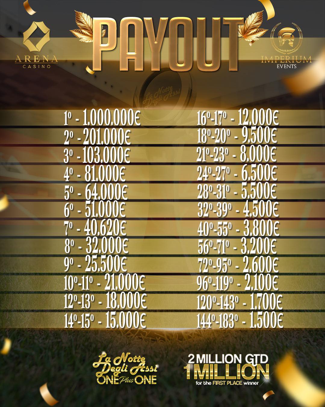 Alle Spieler haben €2.600 sicher, am Final Table gibt es €25.500 für die Spieler. Platz 3 bringt €103.000 ein, der Runner-Up €201.000 – das fünffache gibt es dann für den Sieger: €1.000.000!