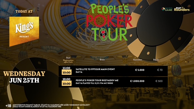 Heute fällt im King’s Resort Rozvadov dann der Startschuss für das People’s Poker Tour Festival mit dem Tag 1A des €500 Main Events (1.000.000 Garantie).