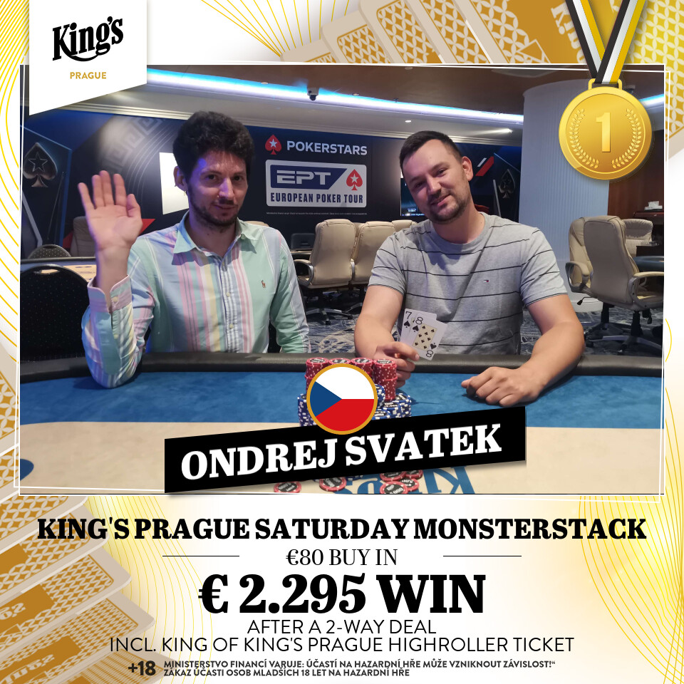 Im King’s Casino Prague gingen für €80 Buy-In ab 15:30 Uhr 53 Entrys und 34 Re-Entrys in das MTT mit €10.000 Garantie. Die sollte auch greifen und den 87 Total Entrys ein nettes Overlay bescheren. Die Top-11 sollten in-the-money landen. Der Mincash sollte €185 betragen und die Siegprämie €2.535. Dabei gab es vom 3-handed zum Heads-Up-Play noch einmal einen dicken Payjump, da für die beiden Top-Finisher auch jeweils ein €500 King of King’s (KoK) Ticket im Preispool enthalten war.