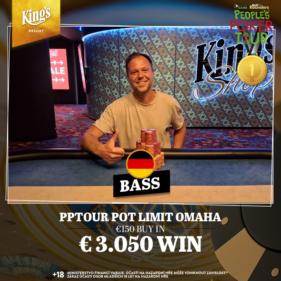Im Kampf um den Sieg ließ der deutsche Spieler „BASS“ seine internationale Konkurrenz auf den Podiumsplätzen zurück: Roman Chocalo aus Tschechien wurde für €1.419 Dritter, und als Runner-Up finishte Angelo Damia aus Italien für €2.168. Richtig aufgedreht hatte „BASS“ im PPTour PLO, wo ihm der Sieg samt €3.050 Prämie nicht zu nehmen waren!