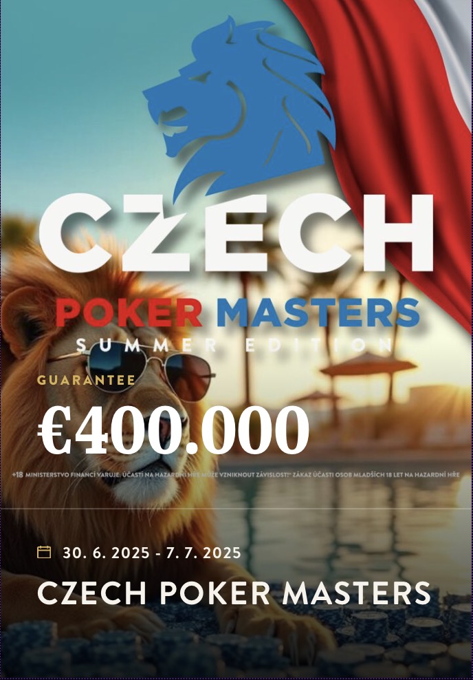 8 Tage, 7 Turniere und insgesamt 26 Satellites, Flights und Spieltage warten vom 30. Juni bis 7. Juli auf Pokerenthusiasten im King’s Resort. Mit Buy-Ins von €30 bis €300, Pokerturnieren im NLH und PLO und Turniervielfalt vom klassischen bis hin zum Turbo MTT, als Bounty oder reguläres Pokerturnier, sollten die Czech Poker Masters für jede Vorliebe und jeden Geldbeutel das passende Turnier parat haben!
