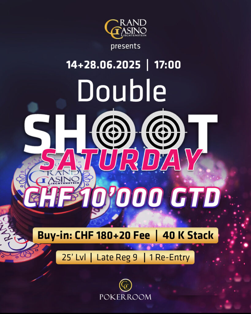 Am Samstag stand der Double Shoot Saturday im Grand Casino Liechtenstein (GCLI) auf dem Pokerplan. 71 Entrys nahmen ihre doppelte Chance auf einen garantiert fünfstelligen Preispool war. Am Ende sollte sich ein internationales Sextett den Löwenanteil des Preisgeldes teilen.