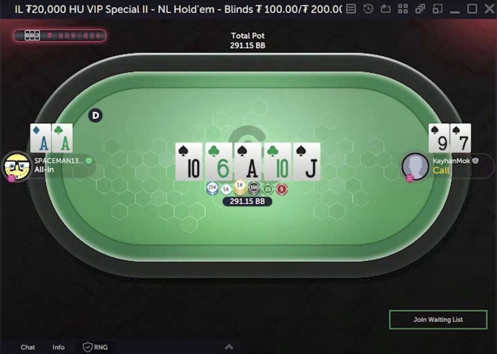 Der dickste Pot der Session umfasste sogar $83.332, als „SPACEMAN1337“ mit AKo in AA bei „KayhanMok“ lief. In so einem Spot muss man wahrscheinlich kein High Stakes Pro sein um alle Chips zu gewinnen oder zu verlieren.