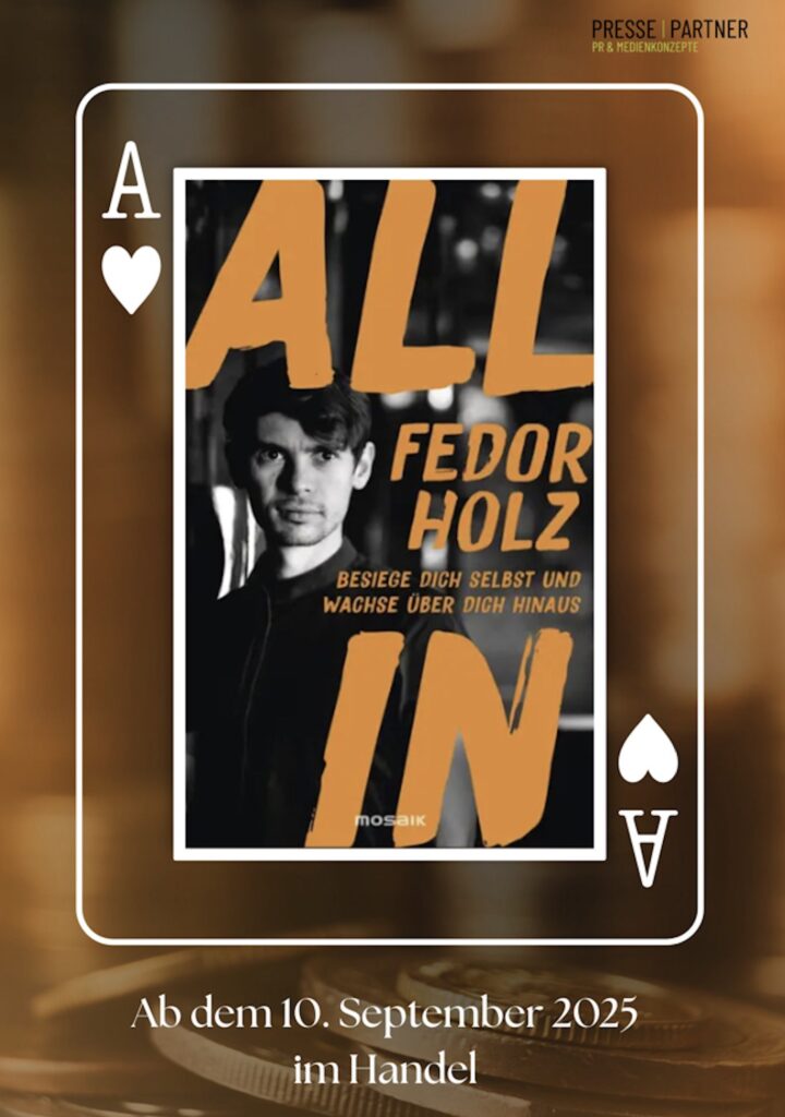Fedor Holz muss in der Pokerwelt niemandem mehr vorgestellt werden. Als Spieler, Coach, Businessman deckt er die volle Palette an Funktionen und Angeboten ab, die es im und rund um Poker gibt. Allerdings fehlte bis jetzt noch eines in seinem Portfolio – ein Sachbuch über Poker! Diese Lücke schließt die Nummer 1 Germany All Time Money List jetzt mit seinem Erstlingswerk „All in – Besiege dich selbst und wachse über dich hinaus„!