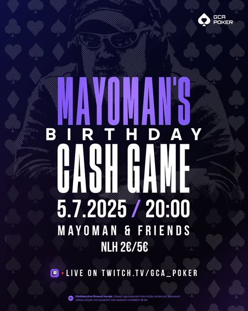 Am Samstag gibt es ab 20:00 Uhr live aus dem Grand Casino Aš den Livestream von Mayoman’s Birthday Cash Game. Gespielt wird Texas Hold’em No-Limit mit den Blinds €2/€5.