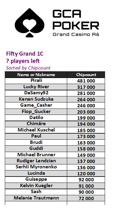Beim Fifty Grand Festival im Grand Casino As (GCA) standen gestern die Tage 1B und 1C Turbo im €100 Fifty Grand (€50k GTD) an und es gab ein €80 Saturday Side (€8k GTD) im Angebot.