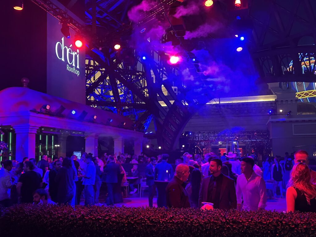 Die Party war, was ich mir erhofft hatte: viele gute Gespräche mit wichtigen Leuten in der Industrie, ich konnte jedem sagen, dass ich zur Verfügung stehe für Projekte etc und hatte auch Spaß, das kostenlose Essen und Trinken und das Feuerwerk beim Caesars Palace zu sehen.